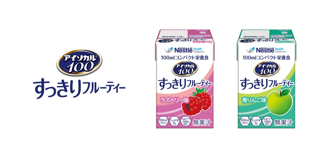「アイソカル® 100 すっきりフルーティー」新発売!ラズベリー・青りんごの2フレーバー100ml飲み切りで200kcal。栄養補給が手軽に