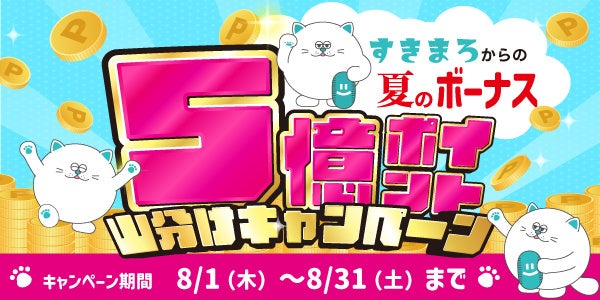 8月中の通算就業回数に応じて、全員で5億ポイント山分けします。