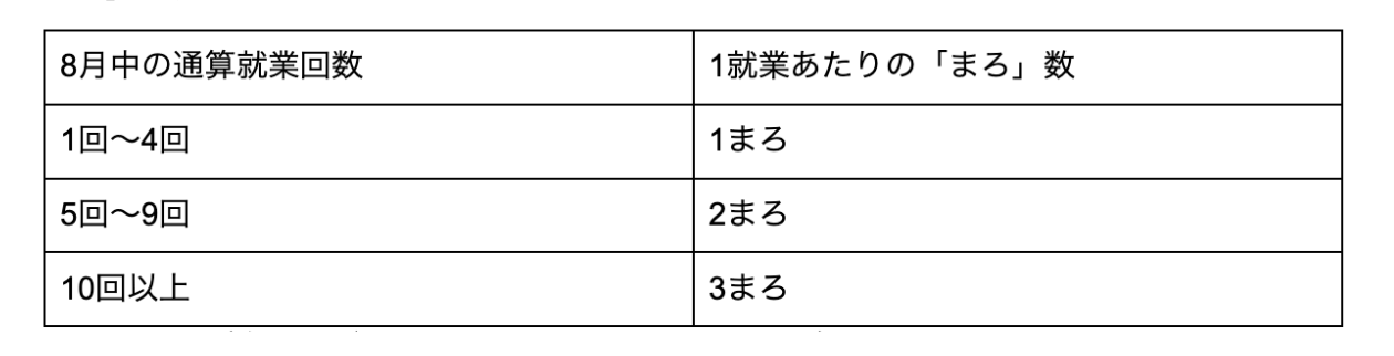 ※就業回数が多いほど1就業につきもらえる「まろ」が増加します。