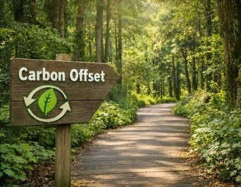 カーボン・オフセットとは、日常生活や事業活動でどうしても排出されてしまうCO₂を、別の場所での削減・吸収活動によって埋め合わせるという考え方です。