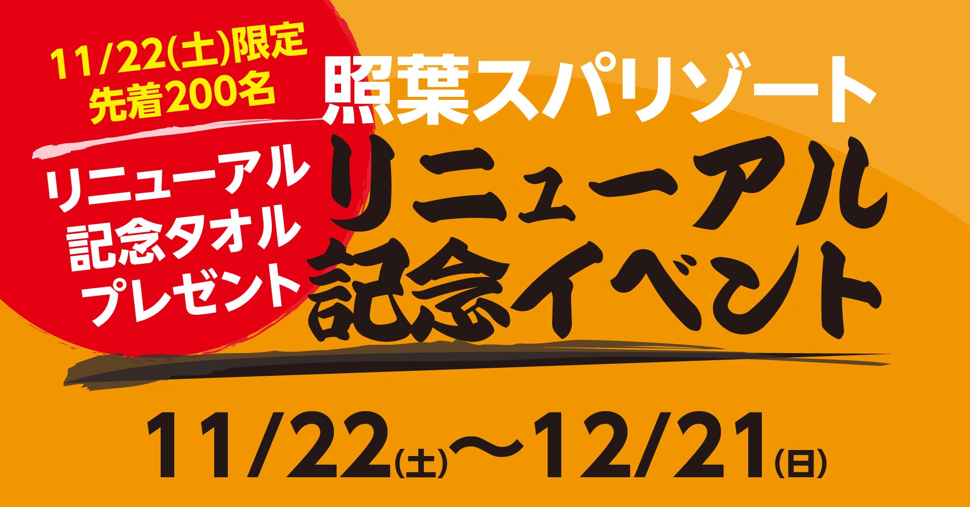 ◆【11/22(土)限定】先着200名様 リニューアル記念タオルプレゼント