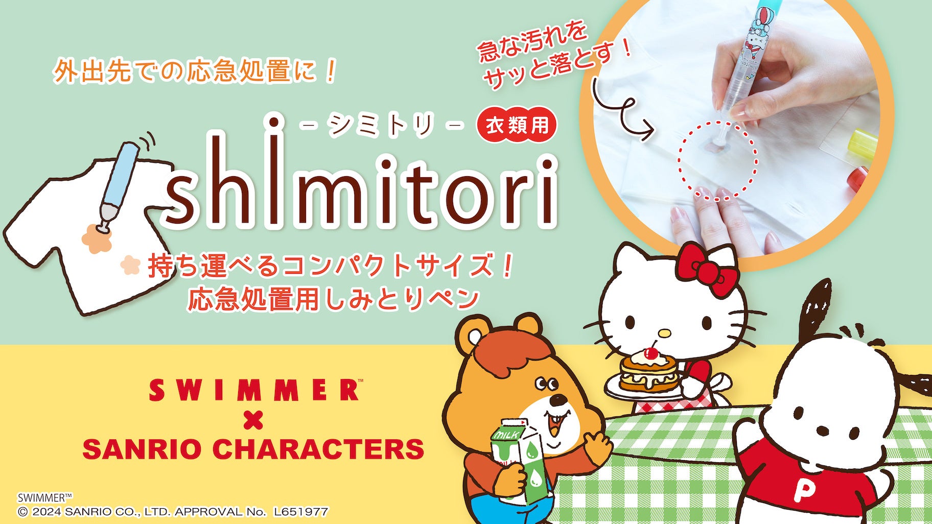携帯できる衣類の応急処置用シミとりペン「shimitori」からスイマーサンリオキャラクターズコラボデザインが登場!