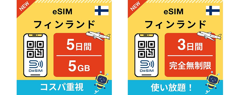 速報JAPAN株式会社(本社: 西東京市、代表: 賀詞)が提供するブランド「DeSiM」は、フィンランドへの渡航者や旅行者向けに、使いやすいeSIMプランをAmazonで販売開始しました。旅行中にスマートフォンでデータ通信が快適に利用できるDeSiMのeSIMは、フィンランド滞在中の観光、ビジネス、そして友人や家族とのコミュニケーションをサポートします。物理的なSIMカードを使わずに、スマートフォンに直接ダウンロードするだけで、すぐにデータ通信が可能です。