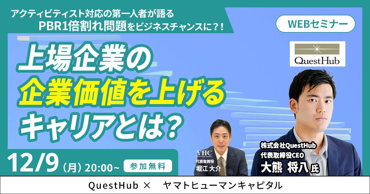 【12/9開催】PBR1倍割れ問題をビジネスチャンスに?!上場企業の企業価値を上げるキャリアとは? | QuestHub × ヤマトヒューマンキャピタル