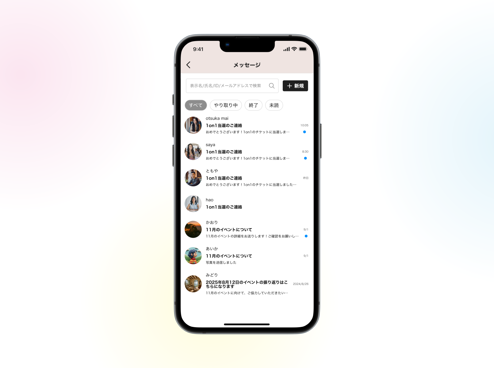 チャット特有の「即レスしなければならない」プレッシャーを排除し、メールのように互いのタイミングで確認できる設計にしています。そのため、管理者のみ会員がメッセージを既読したかどうかを確認出来る設計です。