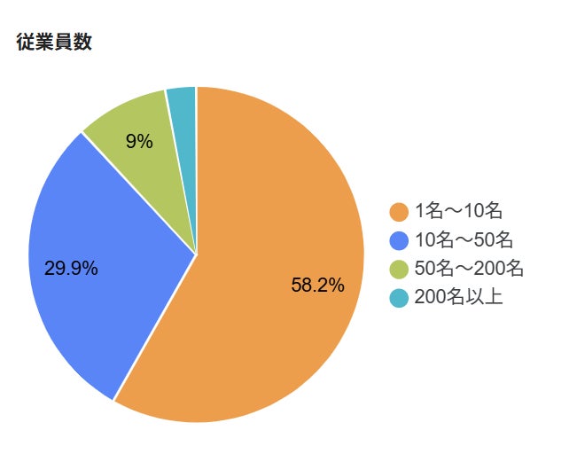 →「1〜10名」が約6割を占め、50名以下の企業が全体の88.1%。