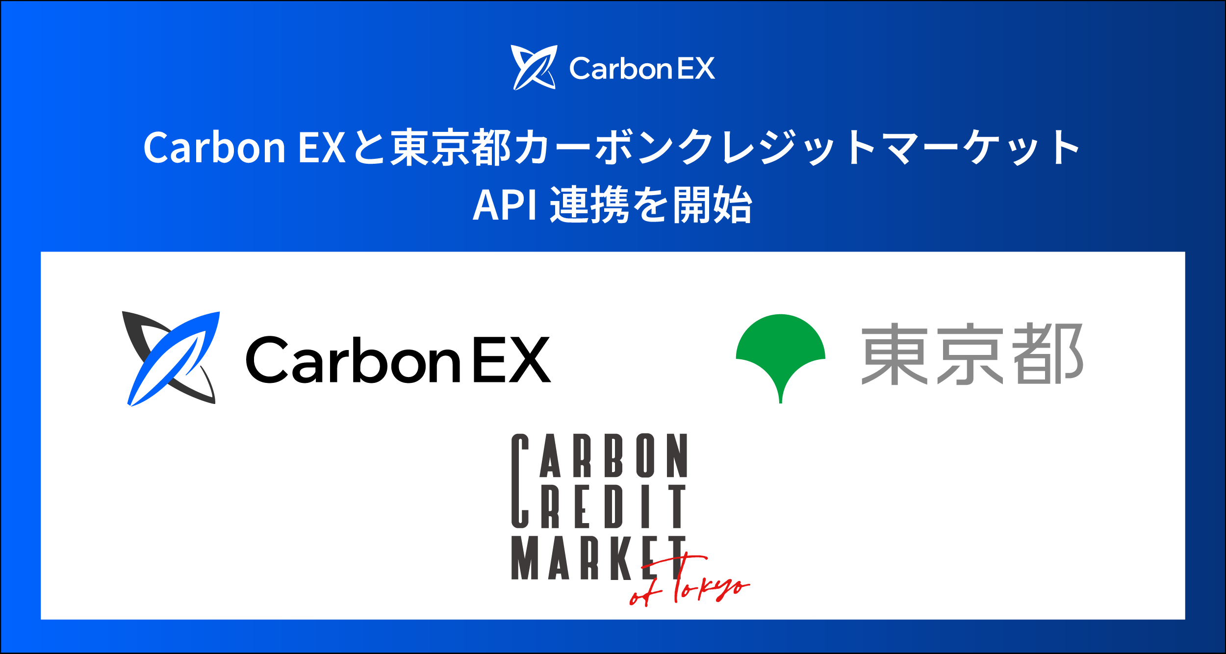 Carbon EX株式会社(本社:東京都港区、代表取締役: 西和田浩平、竹田 峻輔、以下「当社」)は、東京都が運営する「東京都カーボンクレジットマーケット」とのシステム連携を開始したことをお知らせします。本連携により、当社が運営するカーボンクレジット・排出権取引プラットフォーム「Carbon EX」で取り扱うクレジットの一部が、同マーケット上でも購入可能となり、都内企業を中心としたカーボンクレジット活用の利便性が向上します。