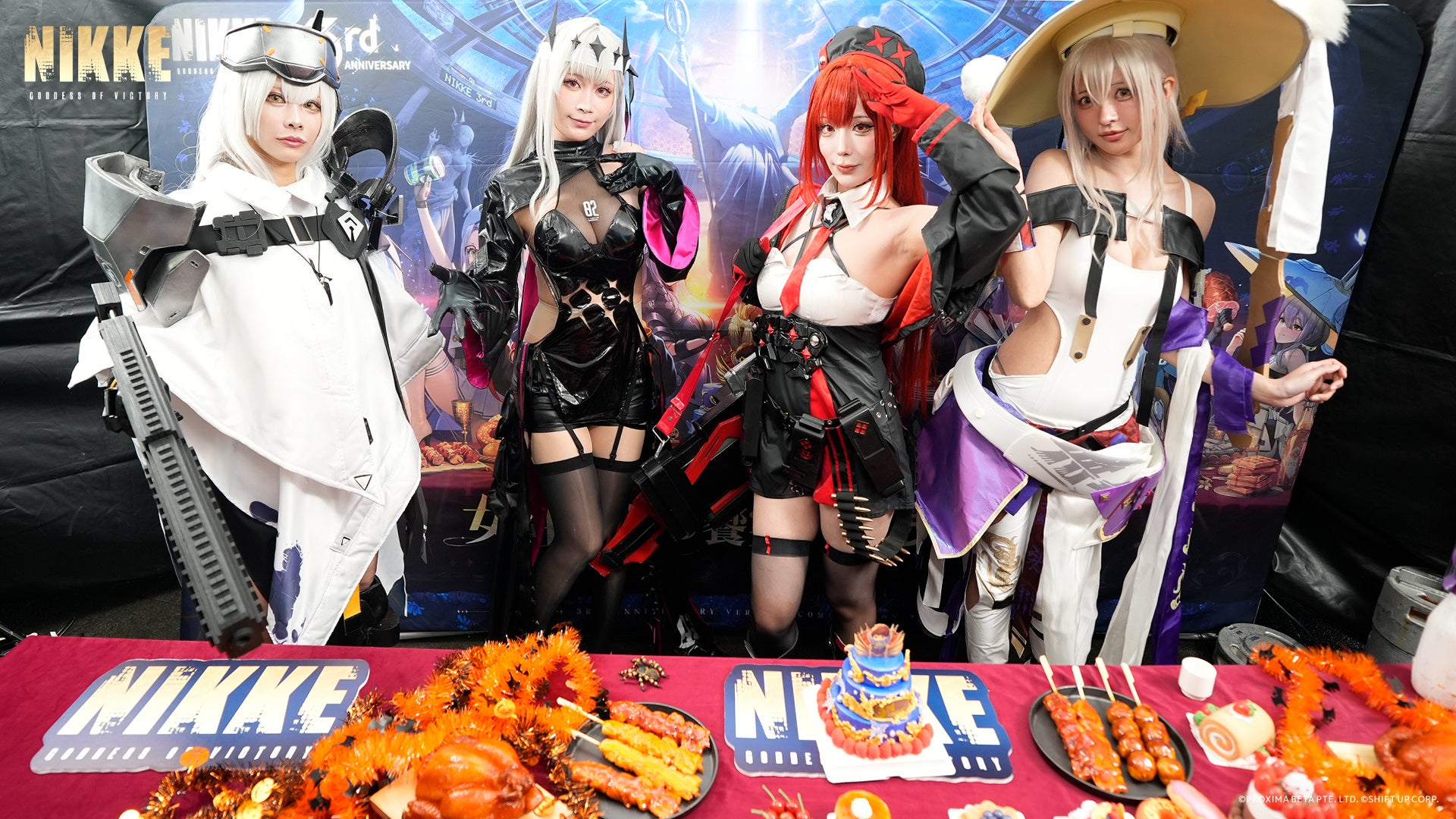 会場では、『NIKKE』3周年を象徴するメインキャラクター・ナユタを再現した10名の公式コスプレイヤーが登場。フォトスポットでの撮影はもちろん、ブース内や池ハロ公式ステージにも出演し、3周年を祝う華やかな演出で来場者を迎えます。さらに、本日10月26日(日)12:05〜12:20には、中池袋公園の池ハロ公式ステージにて、ニケたちが登場する特別ステージを実施。キャラクターたちがハロウィンの舞台で織りなす幻想的なパフォーマンスを、どうぞお見逃しなく。