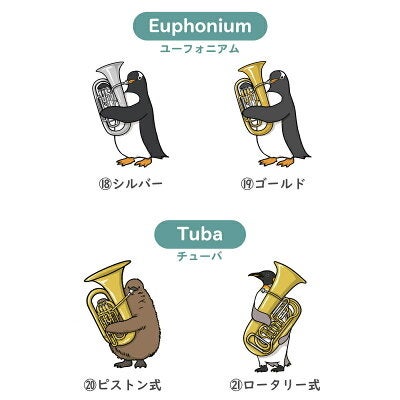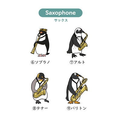 \ 個性とりどり! 吹奏楽 の 楽器 全33種類 / 当店 人気 の 部活 ペンギン デザイン♪