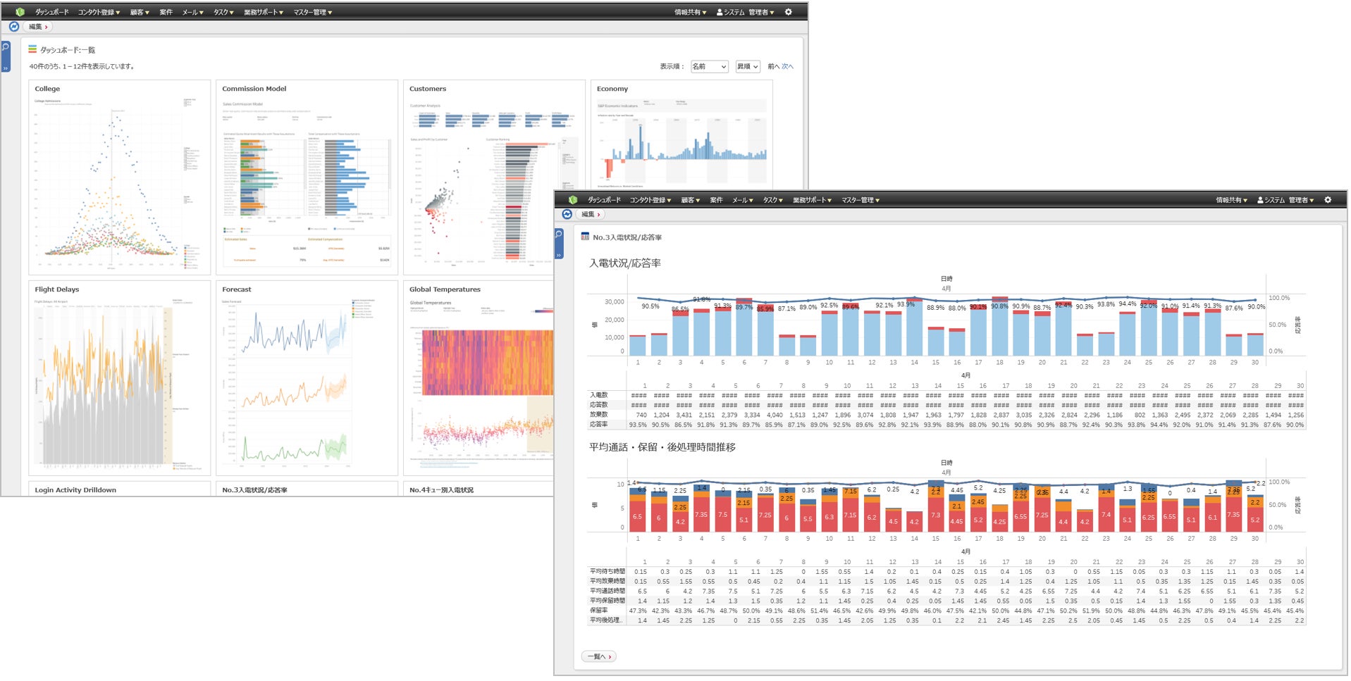 CTI、PBX、基幹システム、MAなど様々なデータを活用した効果的なダッシュボードを提供