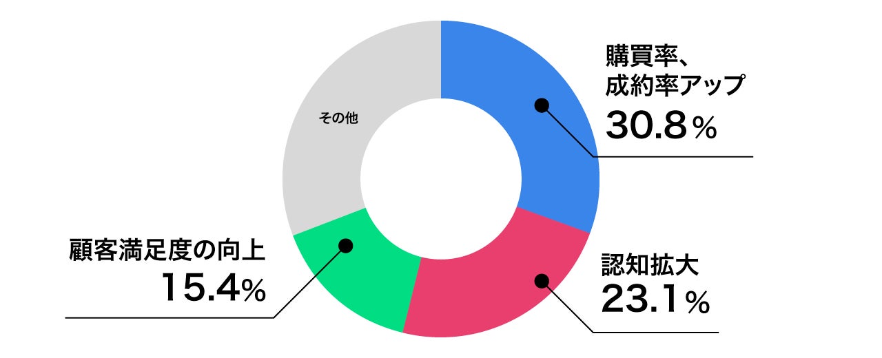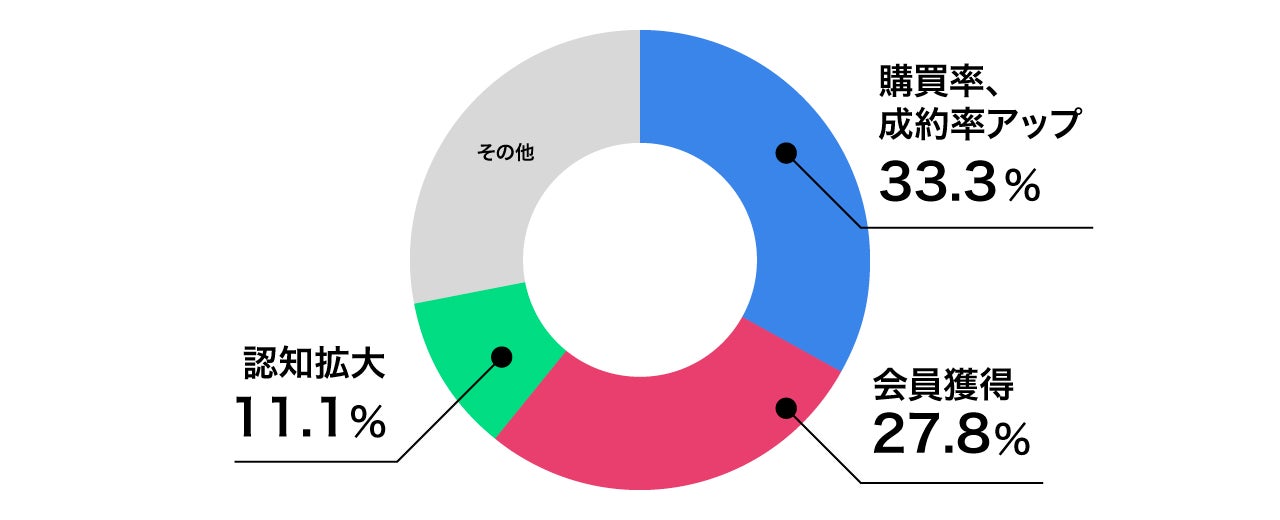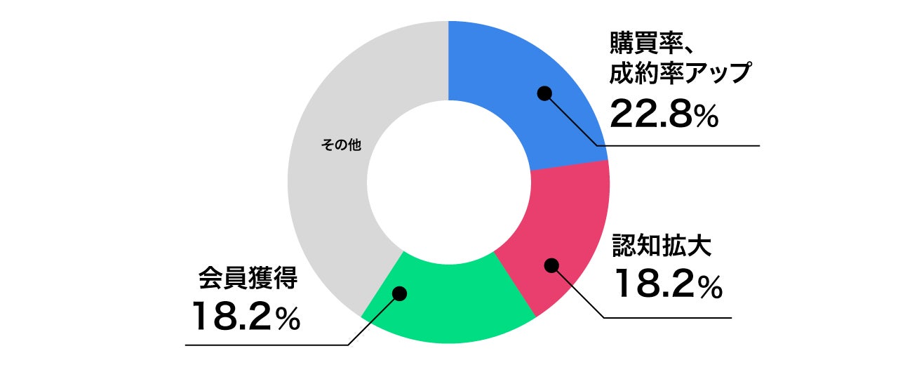 各業界別に見ると、美容業界と製薬・サプリ業界では、「購買率、成約率アップ」が上位の課題となっています。美容や製薬・サプリの購買においては、顧客の肌悩み等を分析し、パーソナライズされた提案を行う診断コンテンツへの需要が高まっていると考えられます。