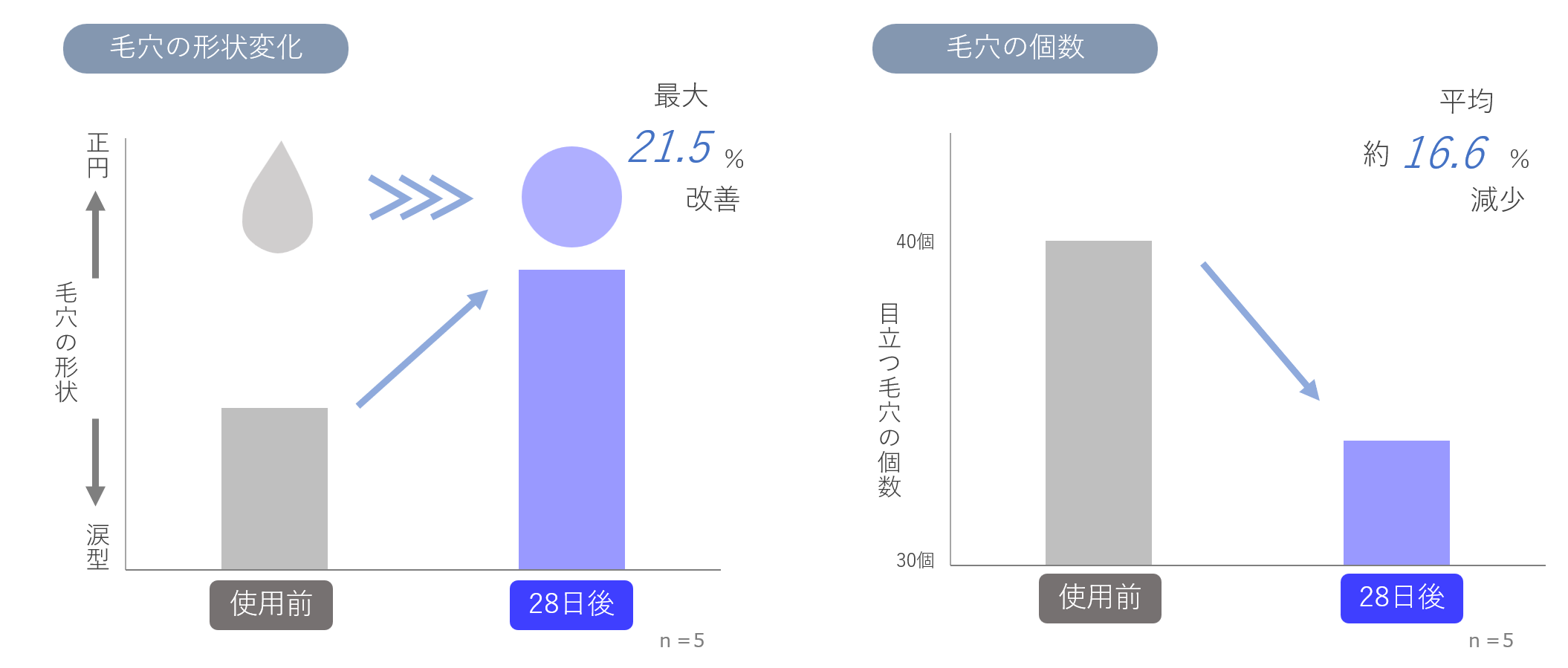 ■発酵乳化技術による浸透促進により、毛穴の形状が正円へ整い、目立つ毛穴が減少