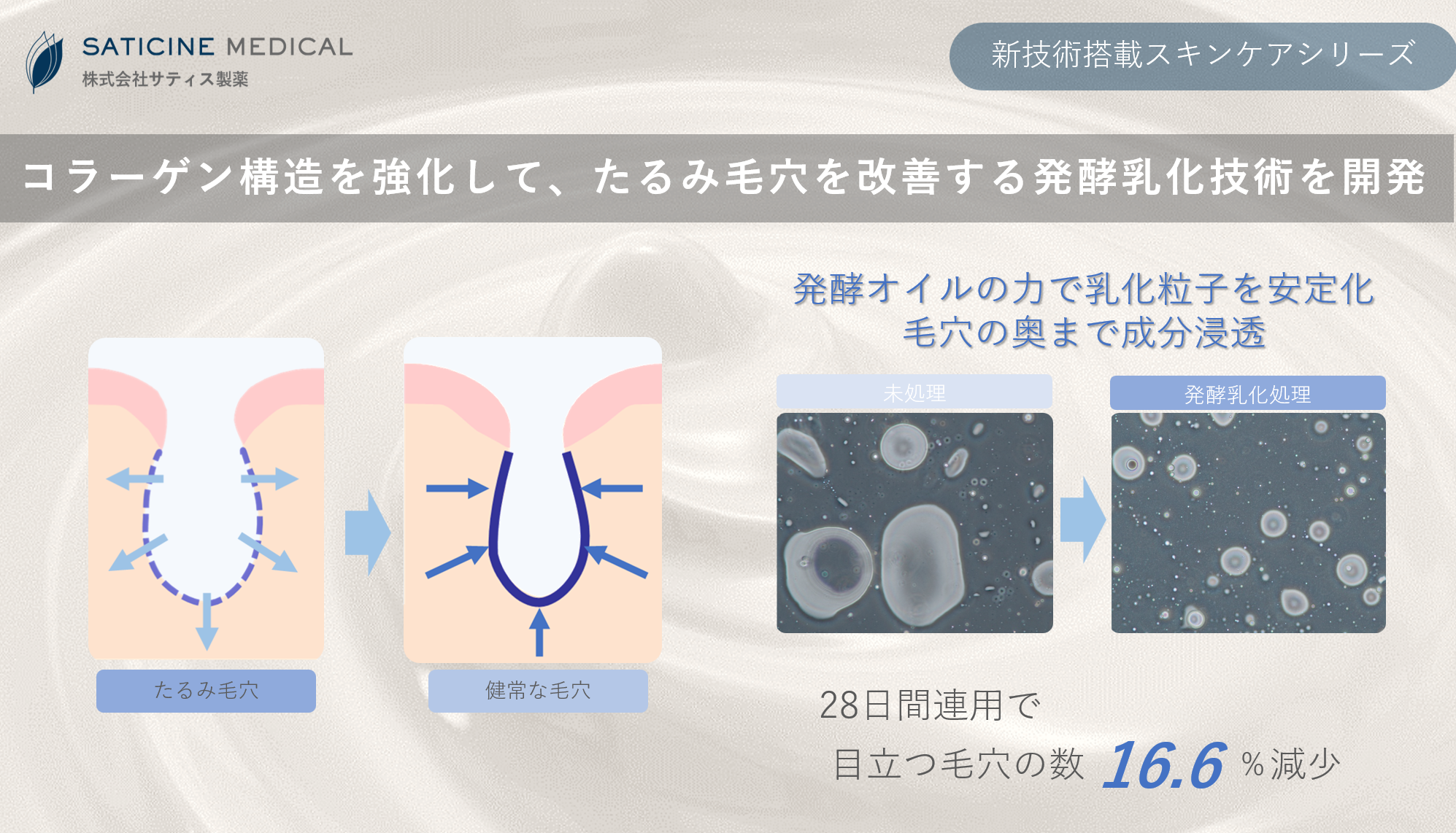 以上より、新技術「発酵乳化技術」の浸透作用により、たるみ毛穴の改善が期待できます。