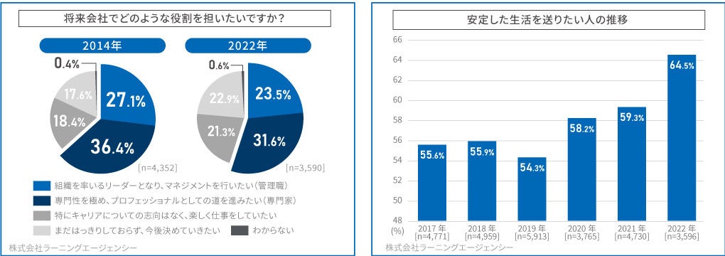 【2022年度 新入社員3,659名の働くことに関する意識調査】『安定志向』は過去最高、『リーダー志向』は過去最低