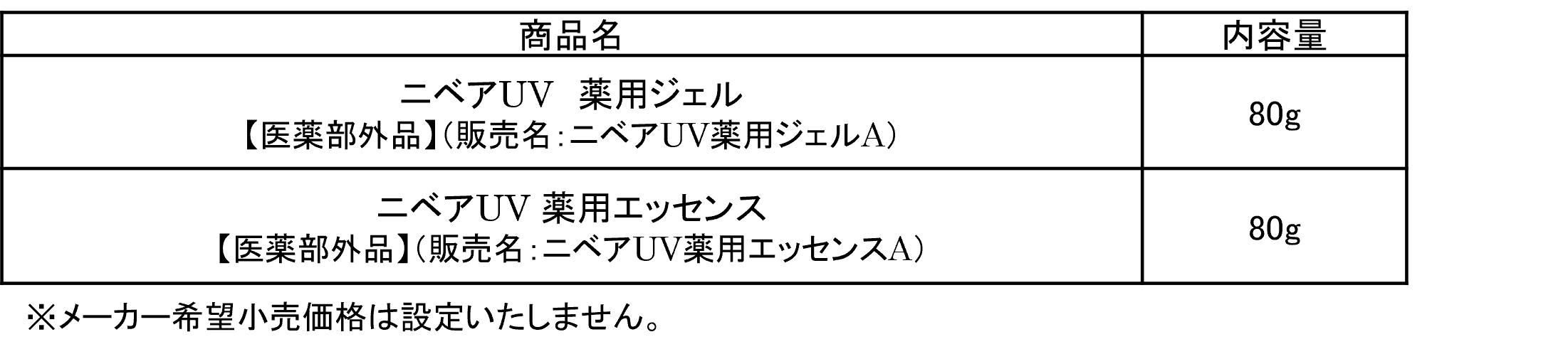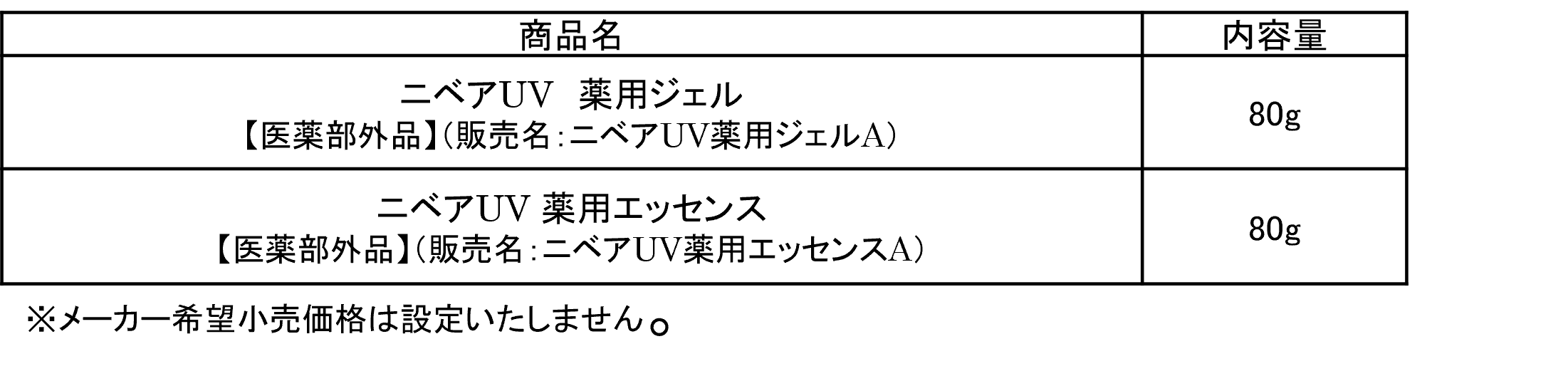 2. 商品名/内容量/価格