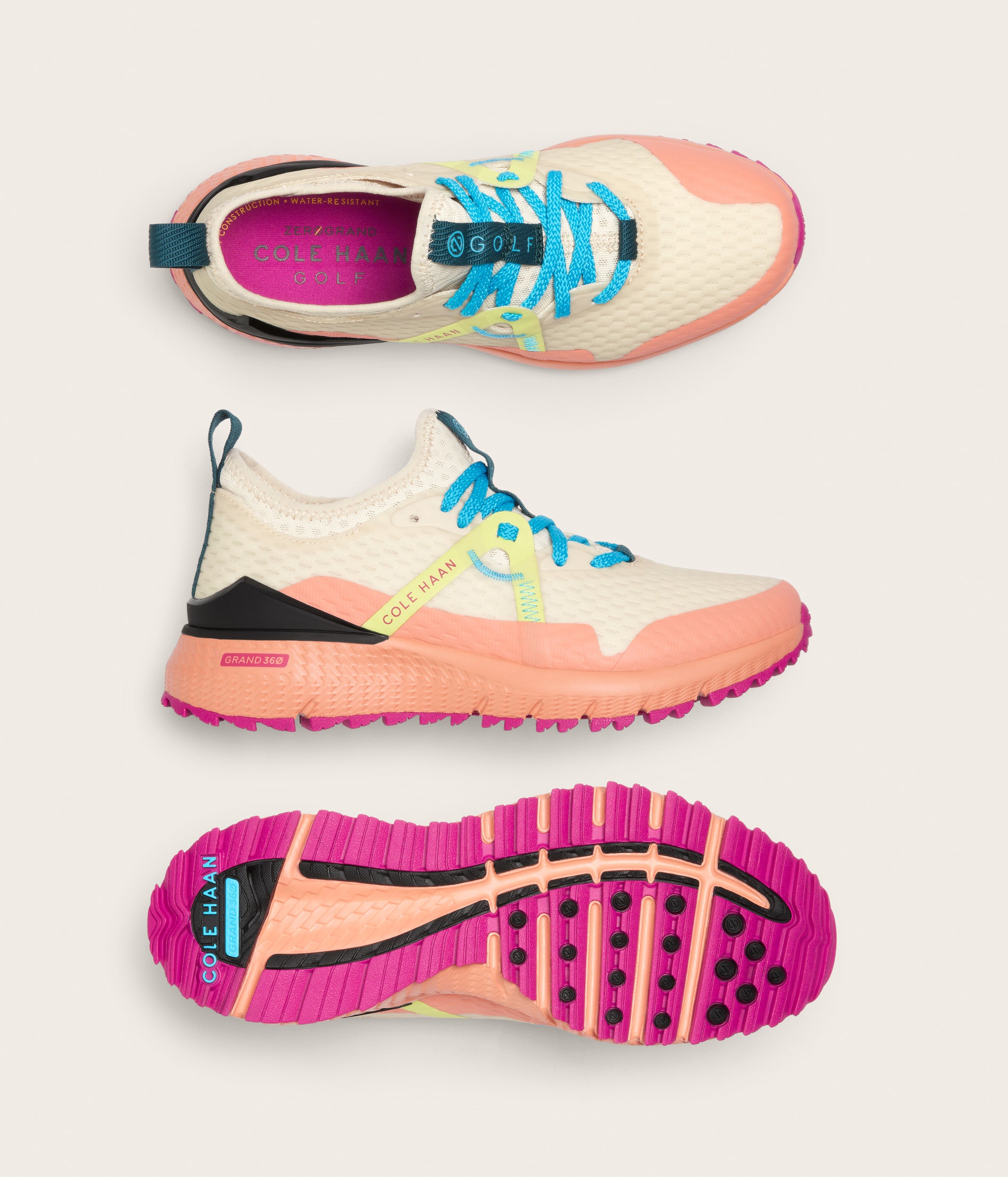 「Move Makers」コレクションのパフォーマンスに特化したライナップからは、ZERØGRANDオーバーテイク ゴルフシューズとZERØGRANDアウトペース2ランニングシューズを発売。また、これに合わせたランニングキャップとバックパック、ランニングベルトが登場いたします。この他にも厚底ソールが抜群のクッション性を発揮するGrandPrøウルトラ スニーカー、そしてZERØGRAND オールデイ スライドサンダルを展開。コレクションは、モダンでフェミニンな色彩感覚でデザインされており、制作にあたってイメージした女性たちの大胆で華やかなパーソナリティを表現するため、スマートでありながらも遊び心溢れる配色が選び抜かれています。また、常に活動し続けるダイナミックなライフスタイルを送る女性のニーズを満たすよう、ひとつひとつのアイテムが熟考され完成しています。