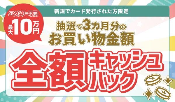 2022年1月~2月に、新規でAOYAMA CARD / BLUE ROSE CARD(青山ライフマスターカード)を発行された会員様の中から抽選で、キャンペーン対象期間内のショッピングご利用金額を全額キャッシュバック(最大10万円)。