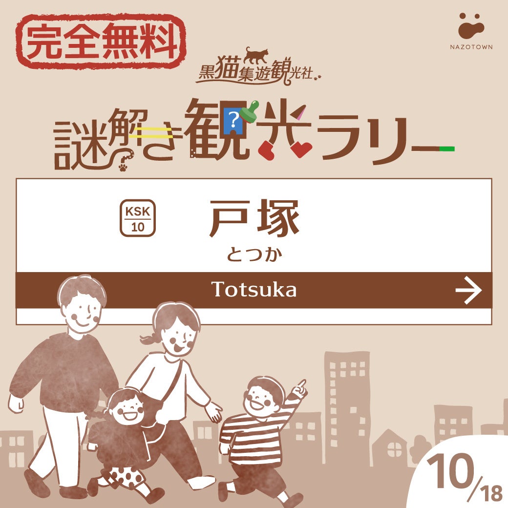 株式会社集遊(本社:神奈川県横浜市/代表取締役:小川 真輔)が運営するNAZOTOWNは、横浜市の各区を舞台に無料で楽しめる回遊型体験イベント『黒猫集遊観光社 謎解き観光ラリー』を開催いたします。第一弾の舞台となる「保土ヶ谷区」「戸塚区」「鶴見区」は2026年1月28日(水)にスタートします。