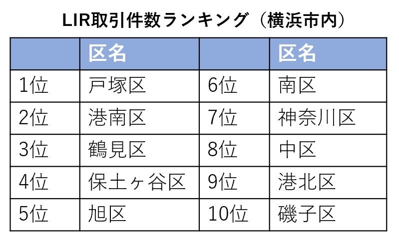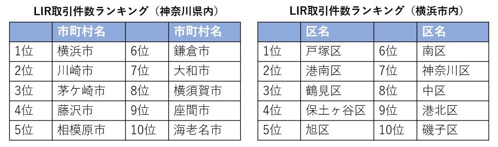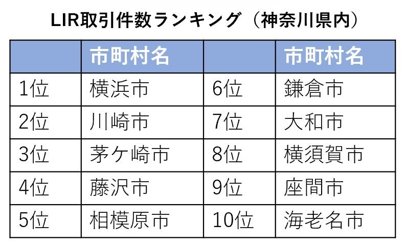 グローカル総合不動産企業、リスト株式会社(代表取締役社長:北見尚之、本社所在地:神奈川県横浜市)の連結子会社であるリストインターナショナルリアルティ株式会社(代表取締役社長:北見尚之、本社所在地:神奈川県横浜市、以下「LIR」)は、2021年における成約事例を基にした神奈川県の取引件数ランキングを発表いたします。