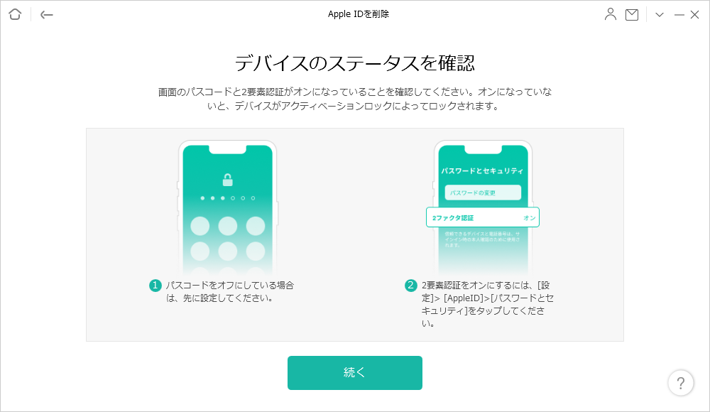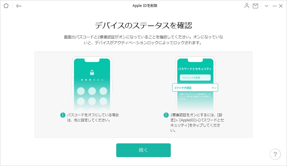 4.「続く」ボタンをクリックしてiCloudアカウントを削除します。