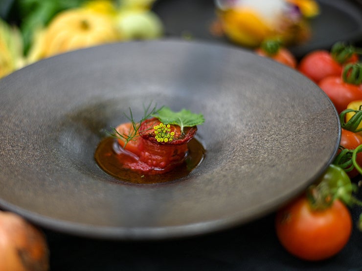 金沢市は岩出町に広がる一面の葡萄園。その中に「レストランぶどうの森 レ・トネル」はあります。「建築界のノーベル賞」ともいわれるプリツカー賞を受賞した坂茂氏の設計によるレストランは、独創的でありながら持続可能性を重視した意匠、建築技術を体感できるアートな空間。北陸の地が育む新鮮で上質な野菜を主役に、シェフのルーツであるラテンアメリカのエッセンスを加えた新しいスタイルのフレンチを味わうことができます。自社監修のワインやクラフトジン、農園の草花の蒸留水で香りづけしたノンアルカクテルなど、珠玉のペアリングとともにお楽しみください。