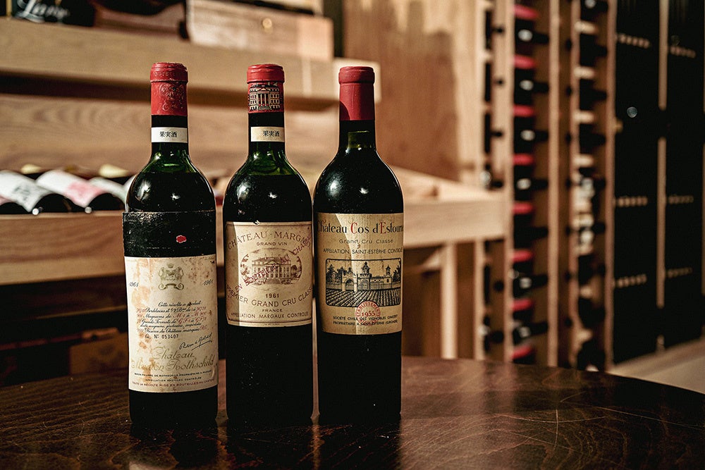 自社の地下セラーに眠っていたワインの中から、5大シャトーとして名高い「シャトー・マルゴー」「シャトー・ムートン・ロートシルト」、そしてスーパーセカンドの筆頭「シャトー・コス・デストゥルネル」と、3つのオールドヴィンテージを含む6つのワインをセレクト。