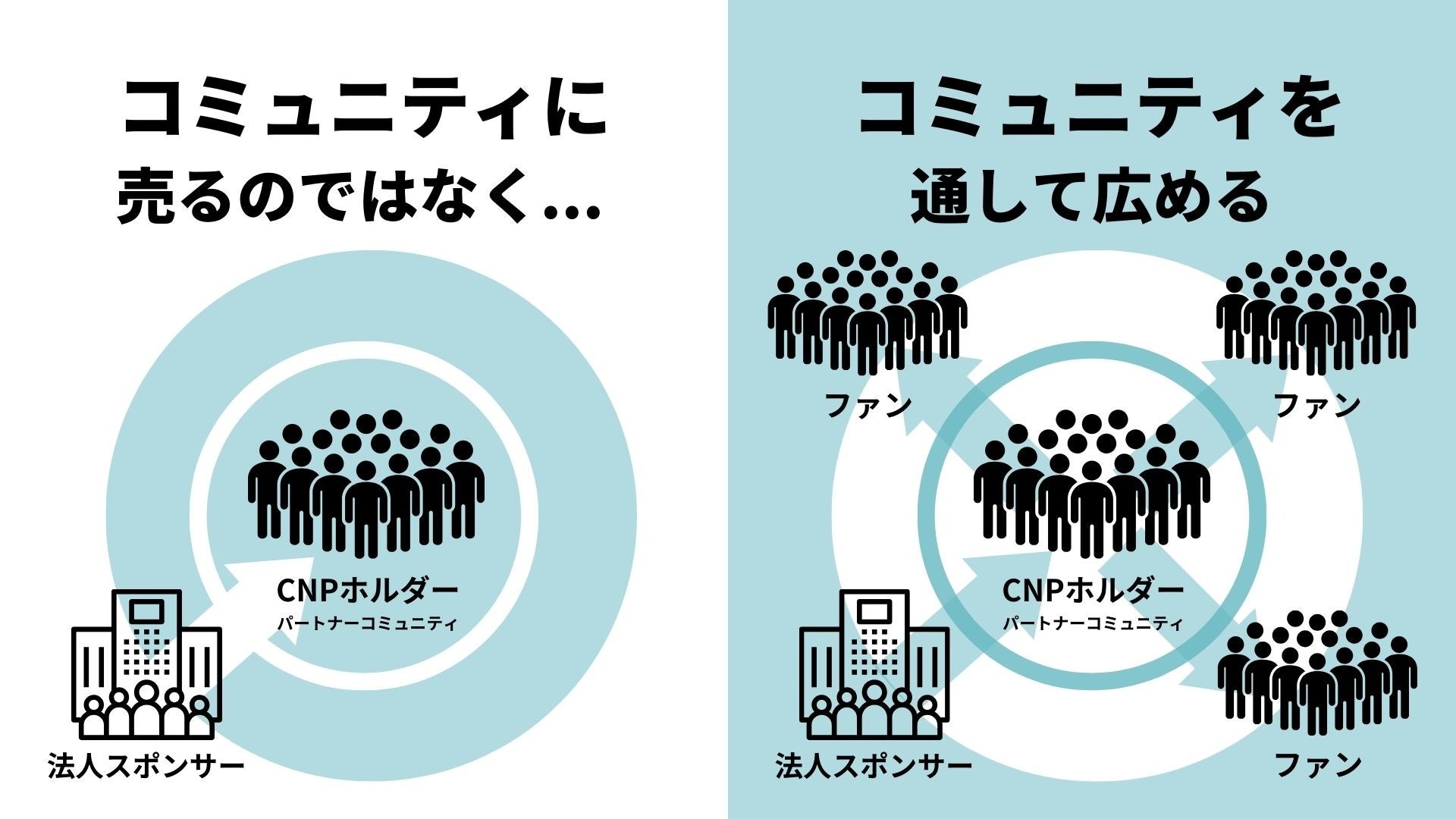 注目が集まるコミュニティマーケティングですが、企業が独自にユーザーやファンを集め、コミュニティを運営することは容易ではありません。一方、すでに完成しているコミュニティを活用することで、変化の早いWeb3領域でもマーケティング活動の精度を高めていただくことが可能に。また、熱量の高いCNPコミュニティとつながることで、Web3領域の事業・サービスを展開する企業としての「本気度」を示していただけるものと考えています。