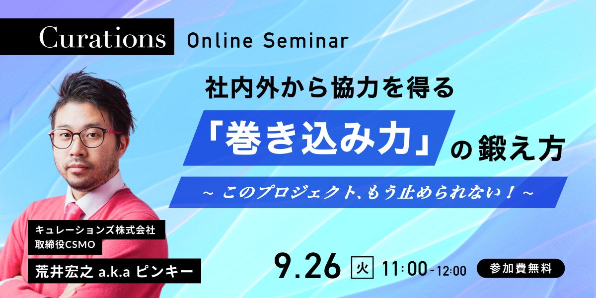 【9月26日(火)11:00~ 無料オンラインセミナー】社内外から協力を得る「巻き込み力」の鍛え方〜このプロジェクト、もう止められない!〜