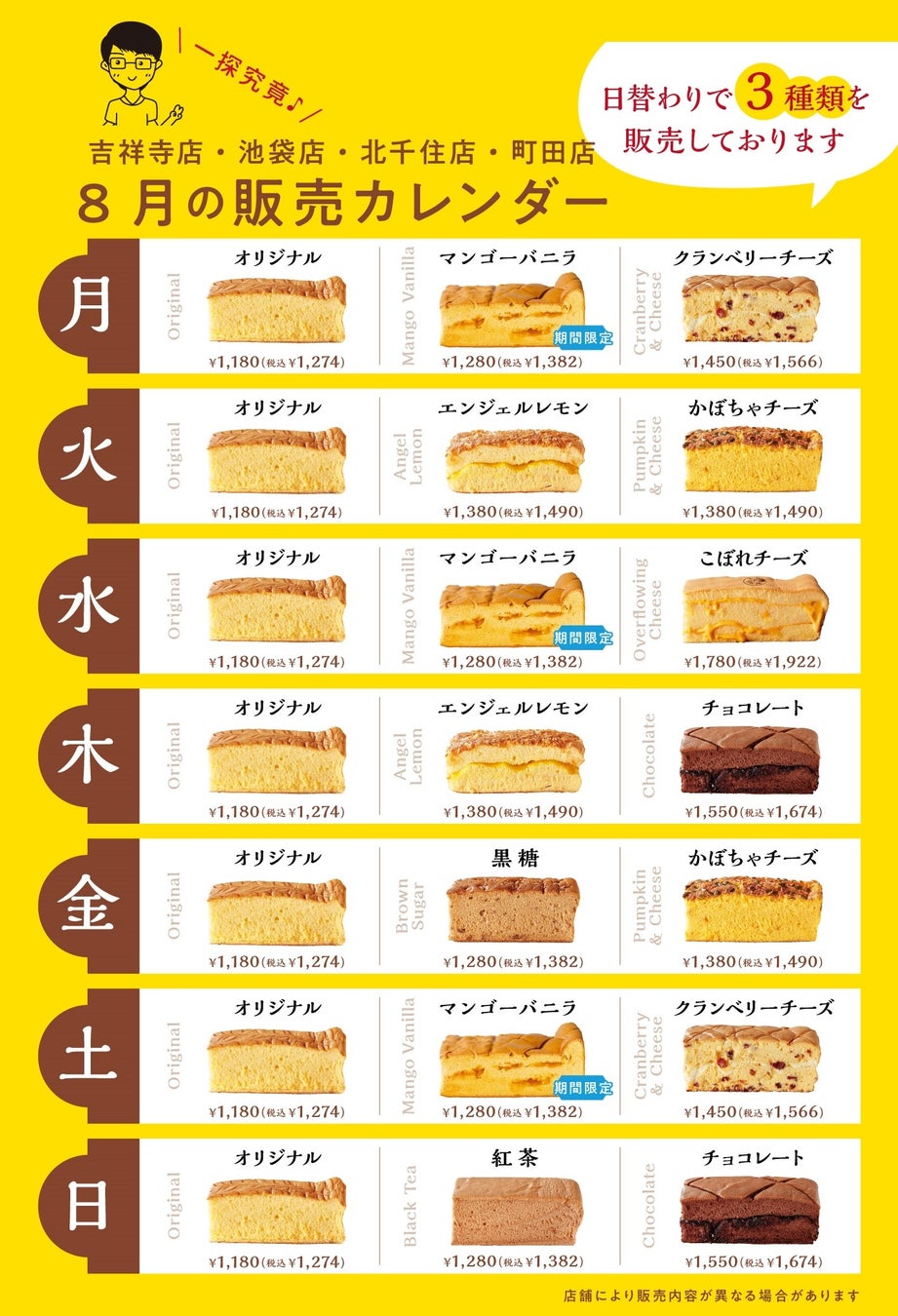 曜日ごとに日替わりで 様々なカステラを販売しております