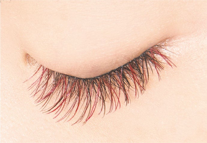 近年、カラーマスカラは非日常を楽しむアイテムから定番化し、まつげを色で彩ることが毎日のメイクに浸透しています。カラーマスカラの種類も増え、手軽に様々な色を楽しむことができるようになりましたが、カラーマスカラはまつげの上から色を覆うため、マットで重い仕上がりになることがあります。一方、カラーマツエクは透明感のあるカラー毛をランダムに装着するので、軽やかで自然に仕上がりますが、簡単に取り外すことができません。