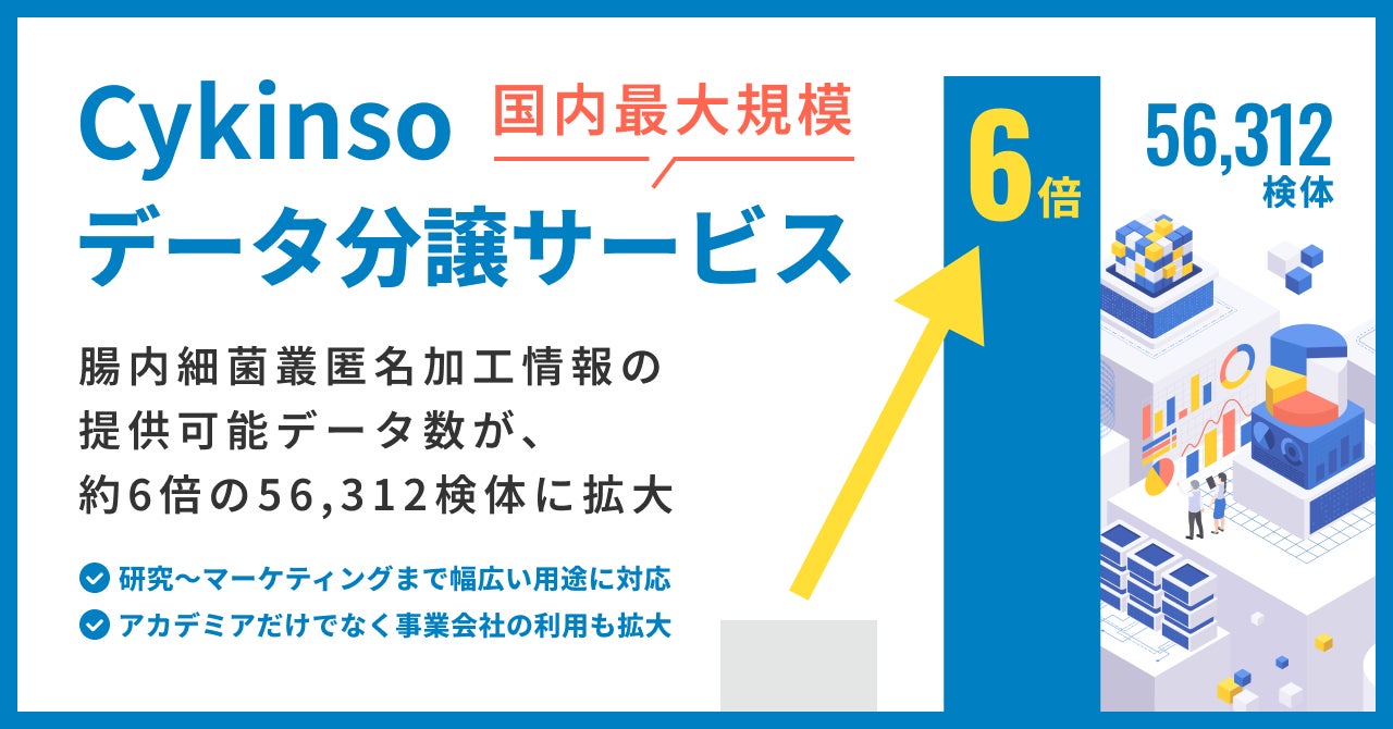 国内最大規模の腸内細菌叢匿名加工情報を提供する「Cykinsoデータ分譲サービス」提供可能データ数が約6倍の56,312検体に拡大し、腸内細菌叢データによるビジネス支援を推進