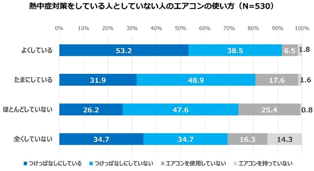 よく熱中症対策に取り組んでいる人はエアコンを「つけっぱなし」の傾向