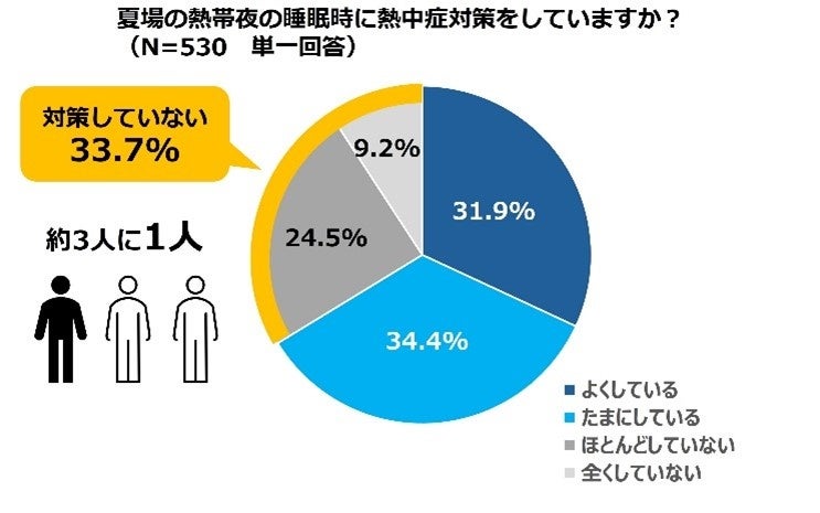 ●約3人に1人(33.7%)は熱帯夜に積極的な「熱中症対策をしていない」ことが判明