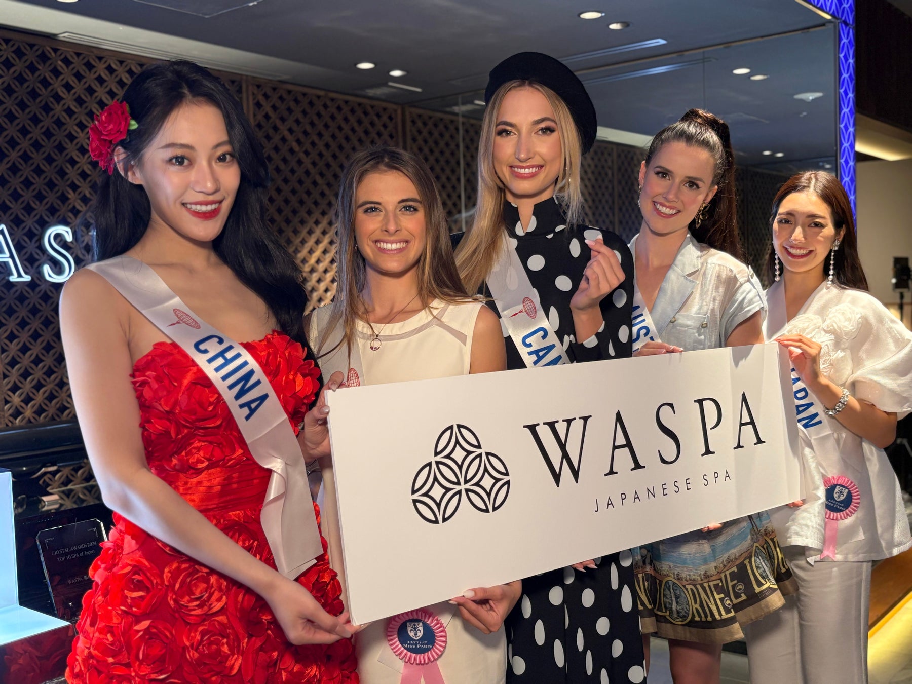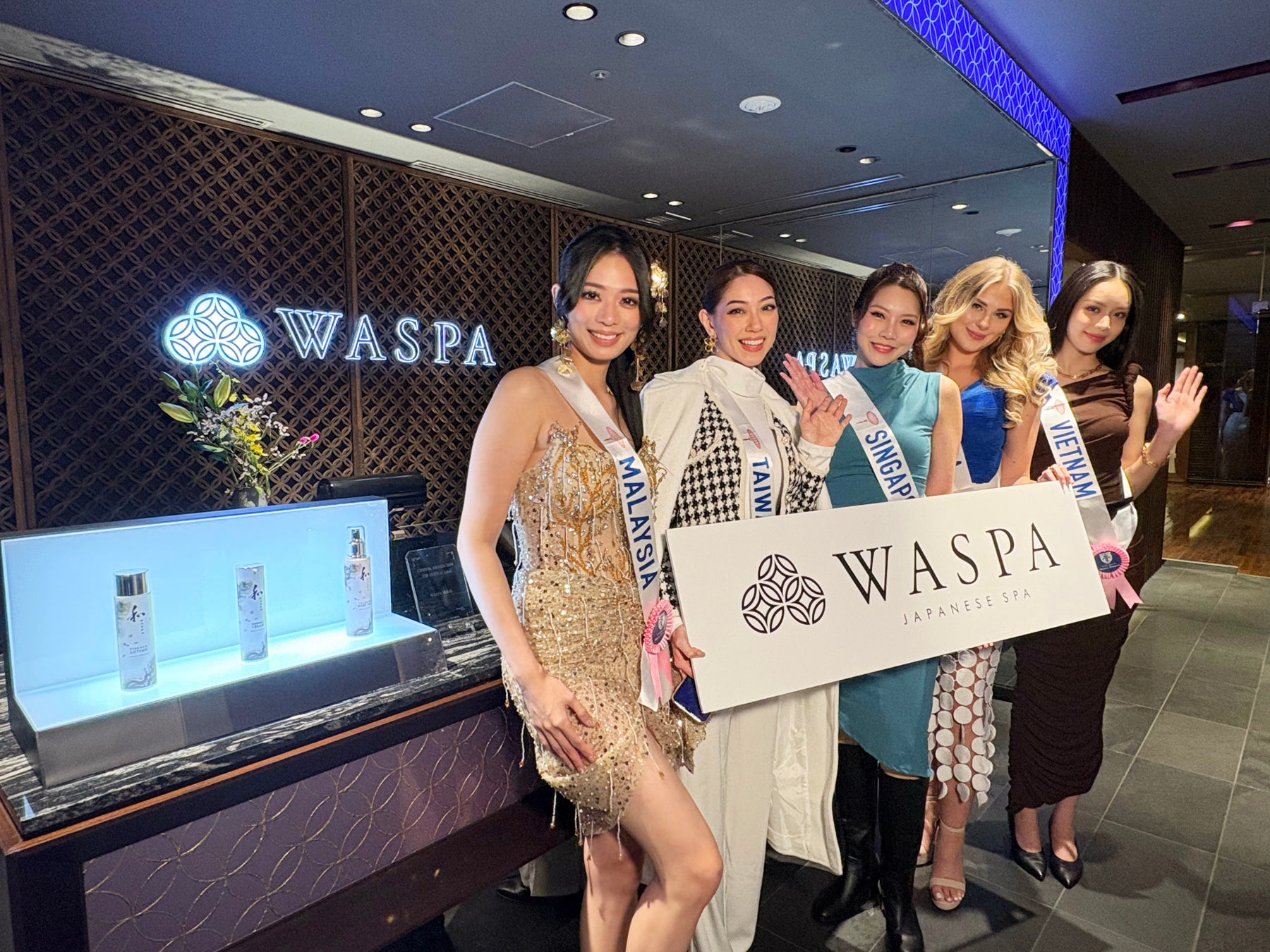 2024年10月31日(木)に都内にある和をテーマにしたMade in Japanのスパ『WASPA』のサロンを訪問し、日本のスパを体験しました。長時間のフライトによる疲れが残っていた出場者たちはこの日をとても楽しみにしていました。