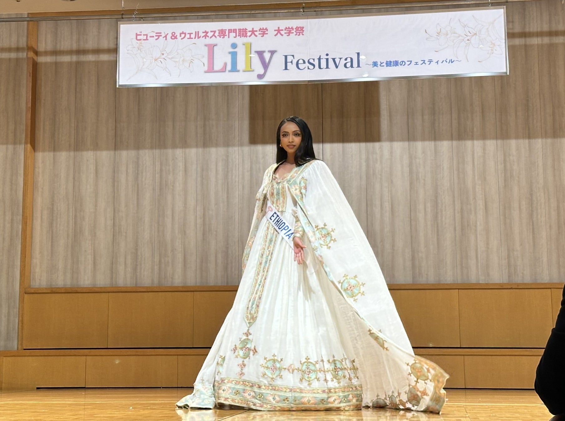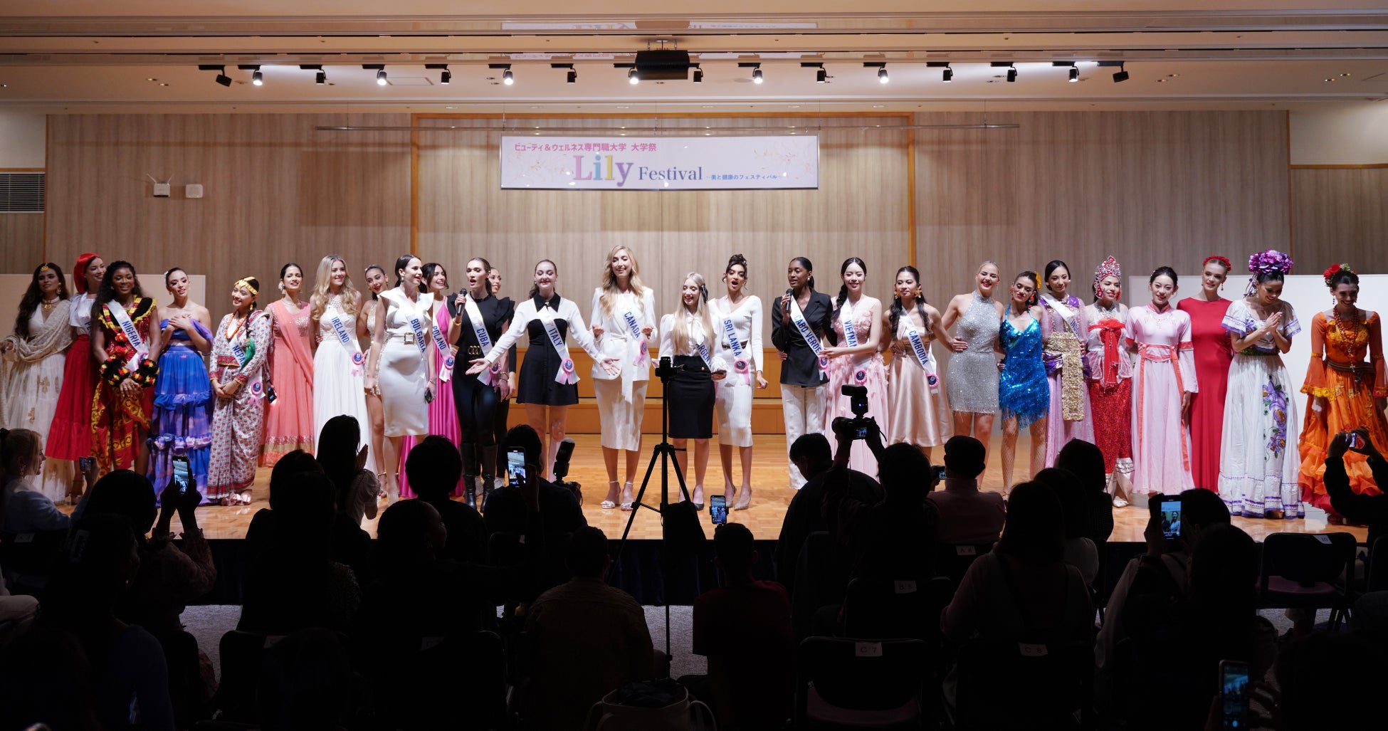 2024年11月2日(土)~3日(日)の2日間にわたりビューティ&ウェルネス専門職大学の大学祭「LILY FESTIVAL」において、2024年ミス・インターナショナル世界大会の出場者約70名が参加しました。特別ステージではミスたちが特技披露や民族衣装の初お披露目をしました。また、日本文化サークルの学生に教えてもらいながらお琴の体験や学生に出場者のミス達がメイクアップをするなど学生との交流を深めました。そして体験したことをSNSで発信しました。