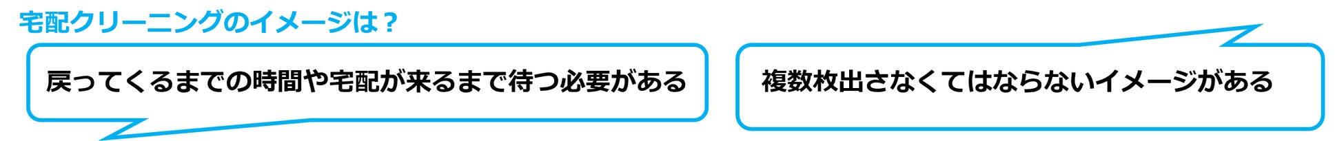 店舗に向かう手間や重い衣類を運ぶストレスがない「宅配クリーニング」。一方、宅配クリーニングに対してのイメージは「戻ってくるまでの時間がかかる」「宅配が来るまで待つ」といった声や「複数枚出さなくてはならないイメージがある」とネガティブな印象も。