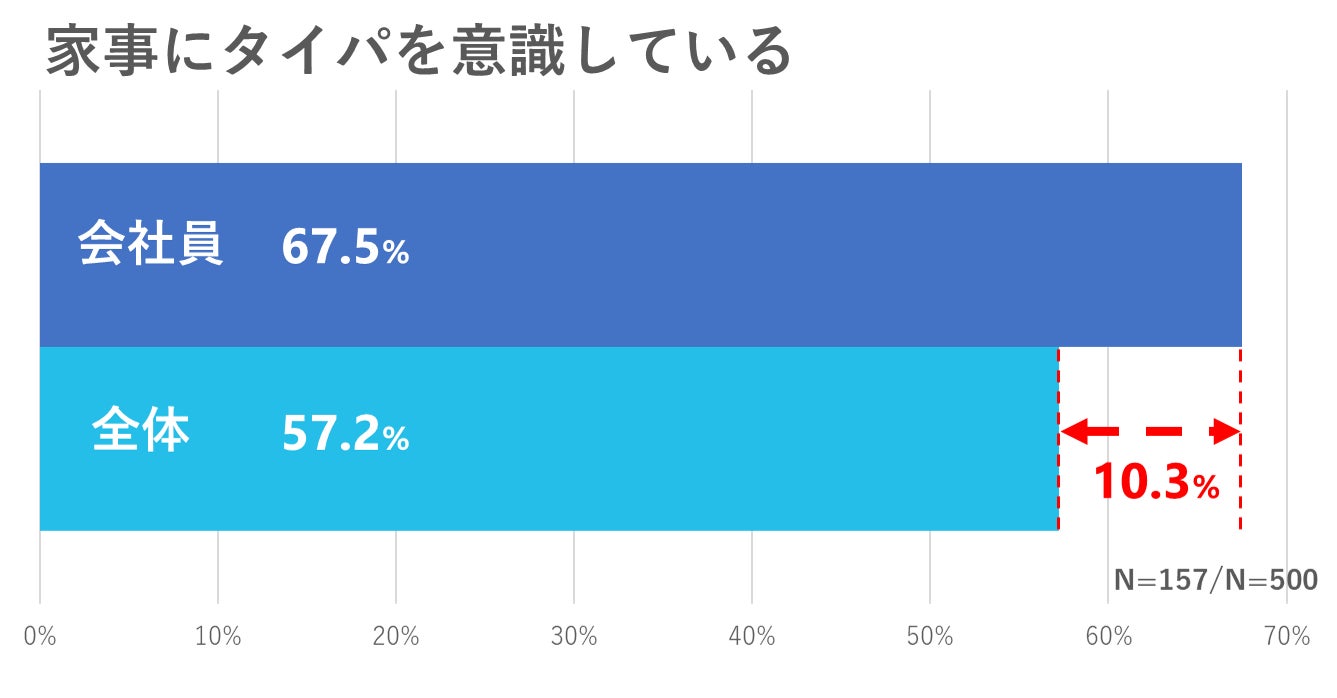 ①家事に“タイパ”は必要?57.2%が家事に対してタイパを意識しており、特に会社員のタイパ意識は67.5%と10ポイントも高い結果に!