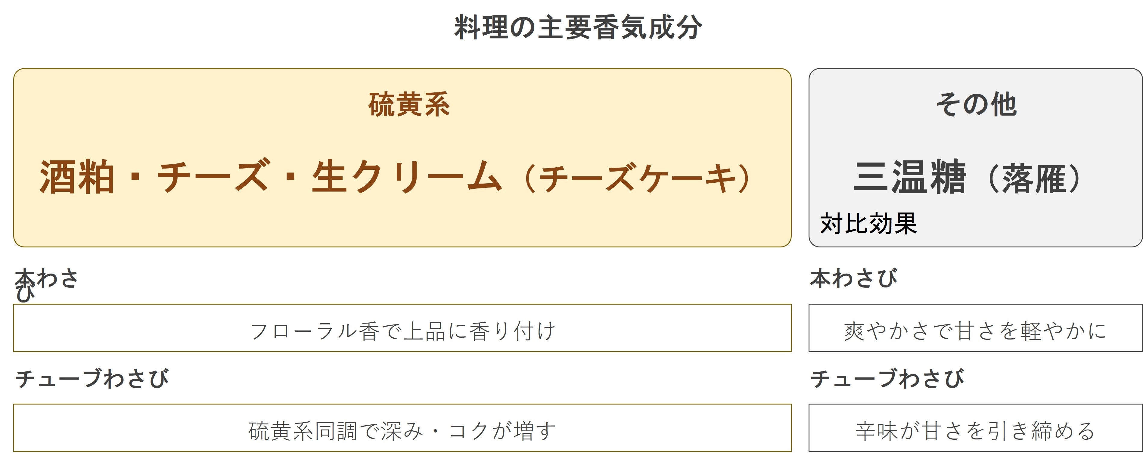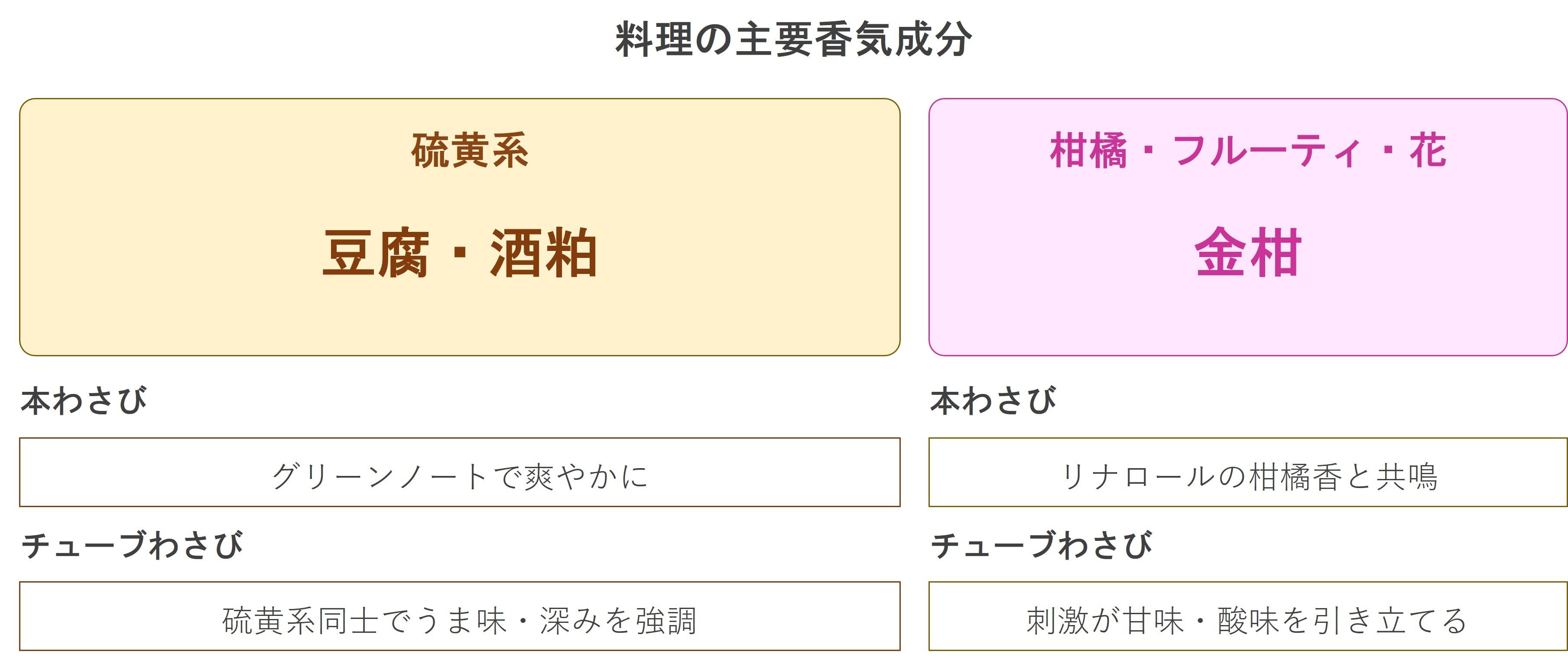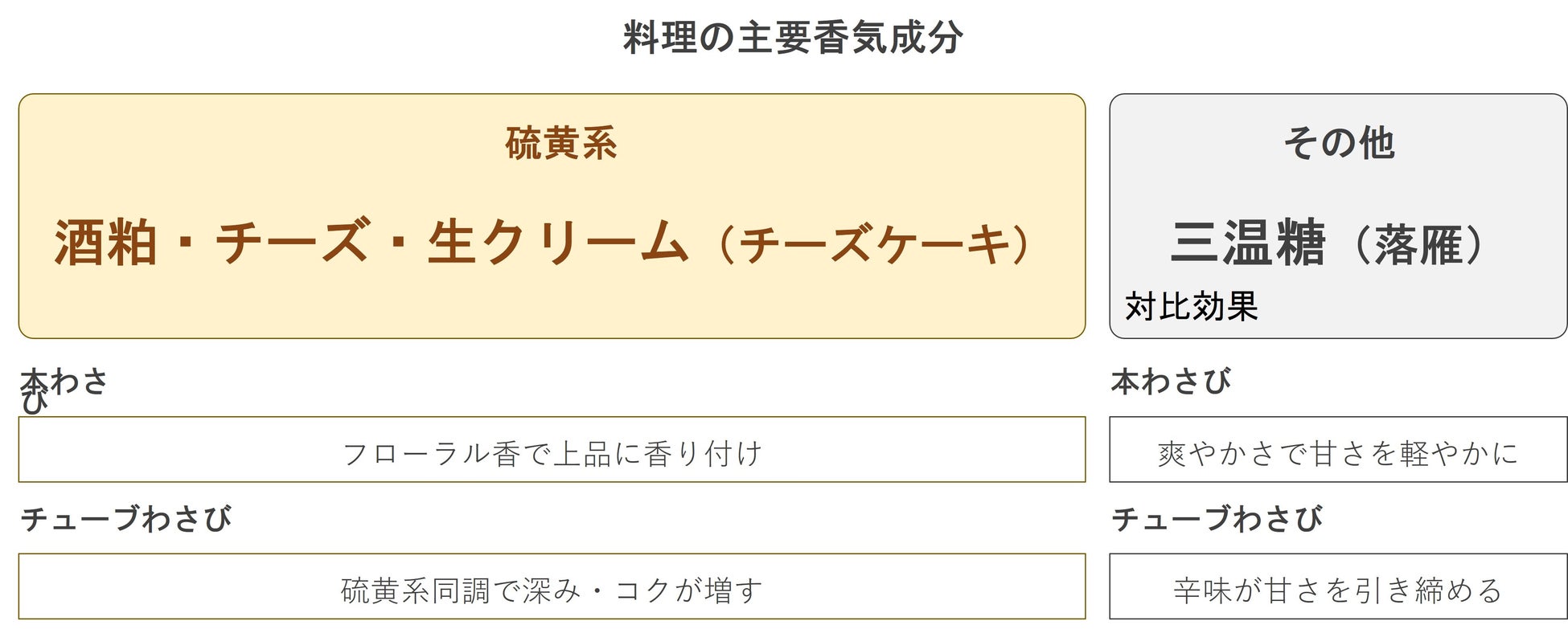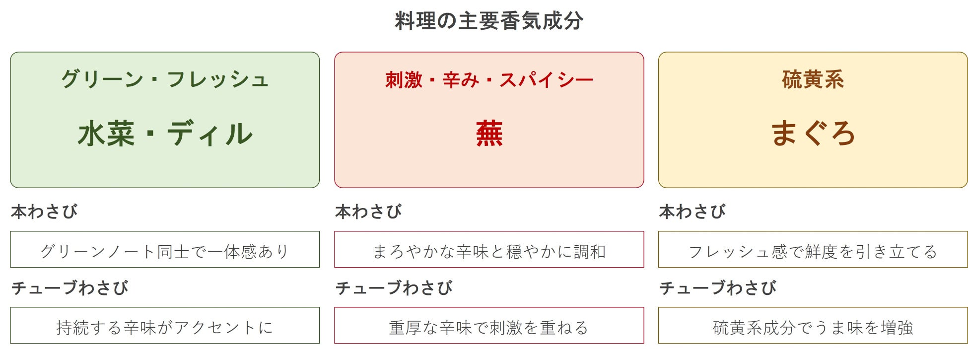 <チューブわさび>硫黄系同士でコク・うま味を増強、持続する辛味が甘味を引き立てる