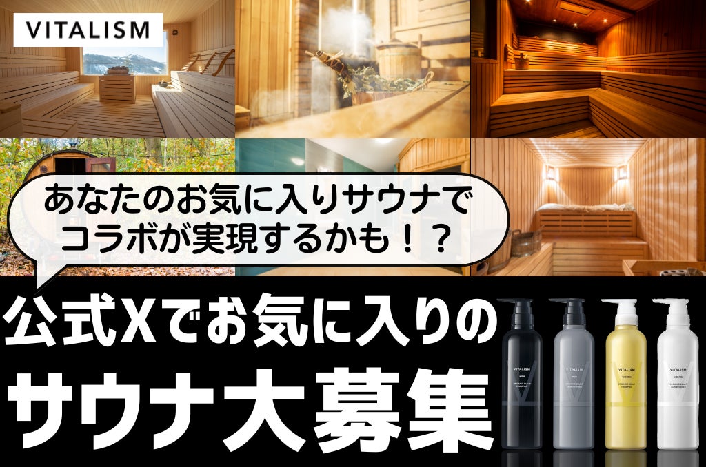 あなたのお気に入りサウナでコラボが実現するかも!?VITALISM公式Xにてお気に入りサウナを大募集!採用された方にはスカルプシャンプー&コンディショナー(350ml)をプレゼント!