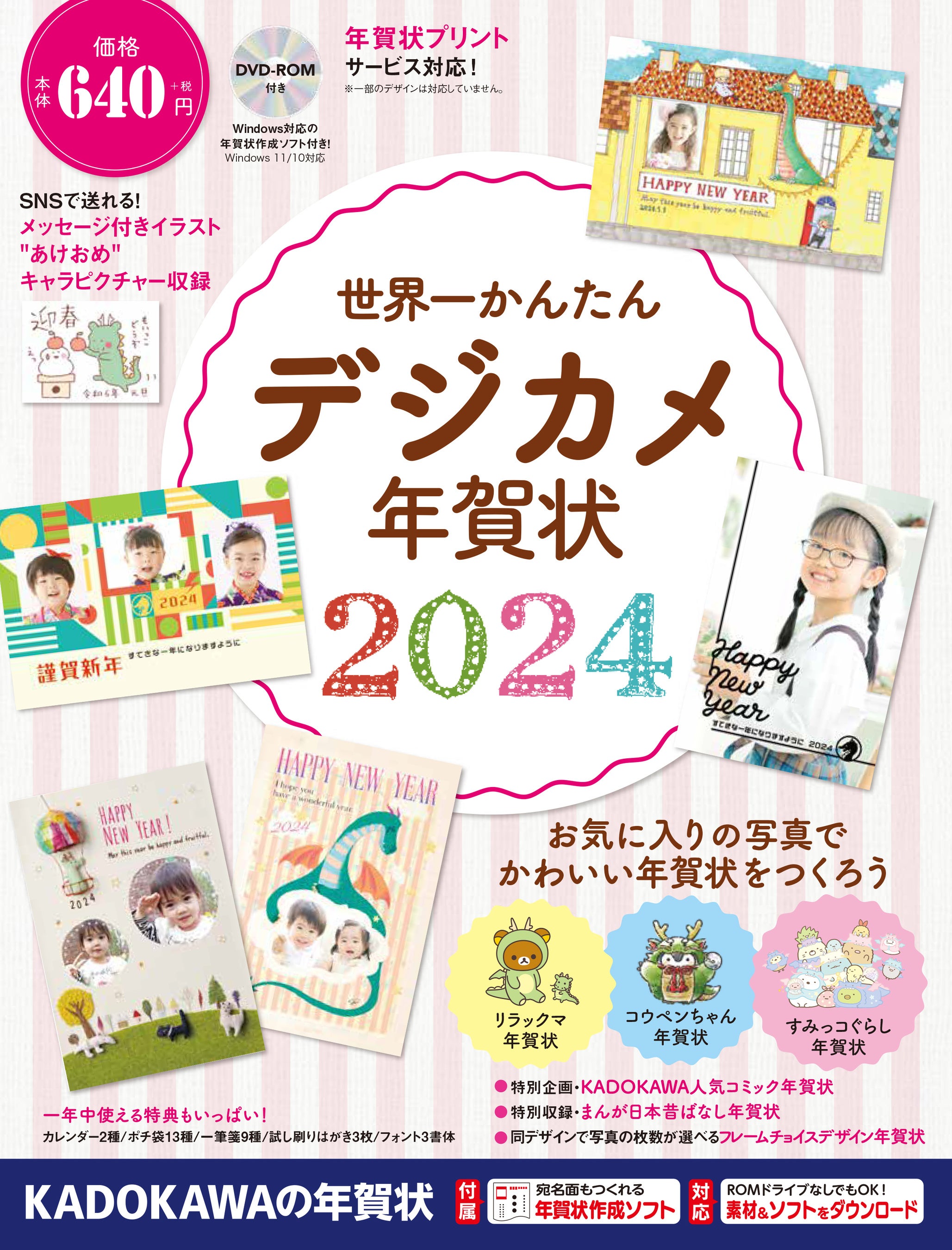 ※「世界一かんたん定番年賀状 2024」「印刷するだけ びゅんびゅん年賀状 2024」「日本の伝統美 和の年賀状 2024」「世界一かんたんデジカメ年賀状 2024」に収録