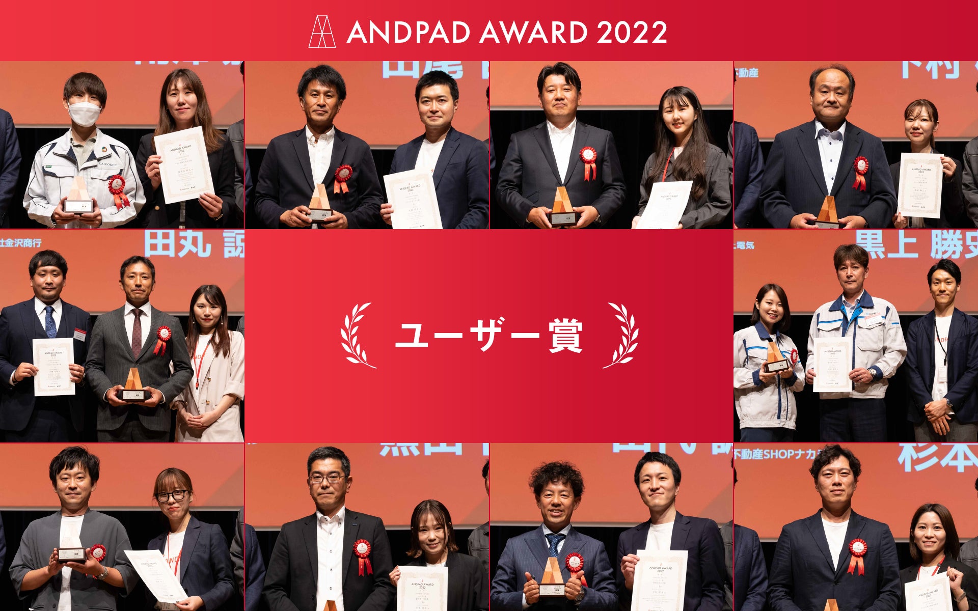 ユーザー賞とは、延べ41.3万人のANDPADユーザーの中から、最もANDPADを利用しているユーザーにお贈りする賞です。現場監督や工事事務、営業事務、そして現場で日々ご活用いただく職人のみなさまのANDPADの利用状況をデジタルにスコアリングし、ANDPADを最も使っているユーザーを表彰いたします。