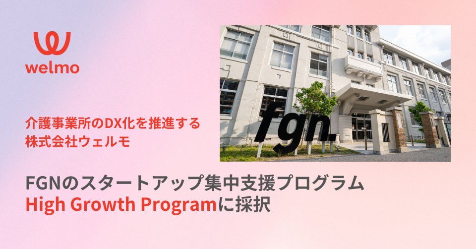介護業界のデジタルトランスフォーメーションを推進する株式会社ウェルモ(本店:福岡県福岡市、代表取締役会長兼社長:鹿野佑介)は、官民協働型のスタートアップ支援施設「Fukuoka Growth Next(以下、FGN)」によるスタートアップ集中支援プログラム「High Growth Program(以下、本プログラム)」に採択されたことをお知らせいたします。