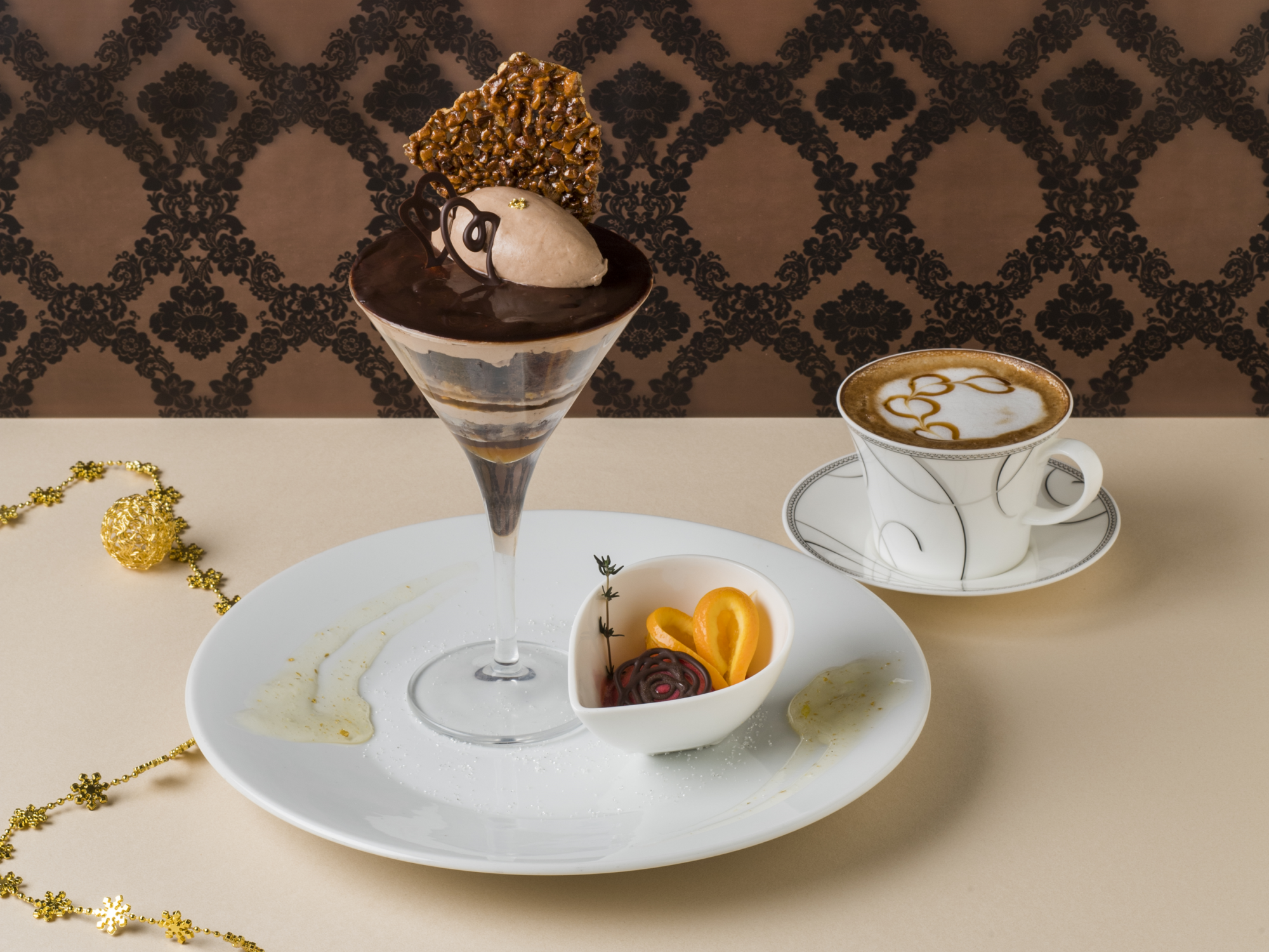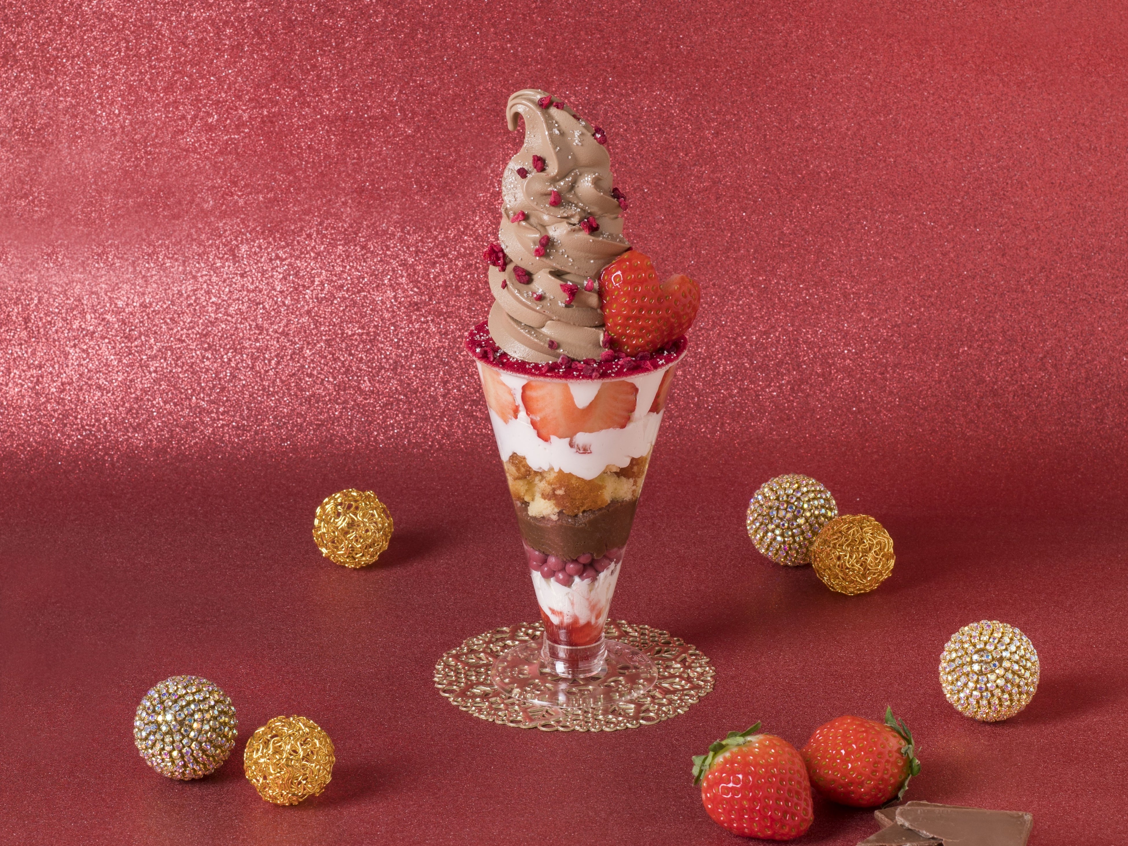 白い恋人ソフトクリーム ブラックを使用し、相性の良いいちごとチョコレートを組み合わせたパフェです。