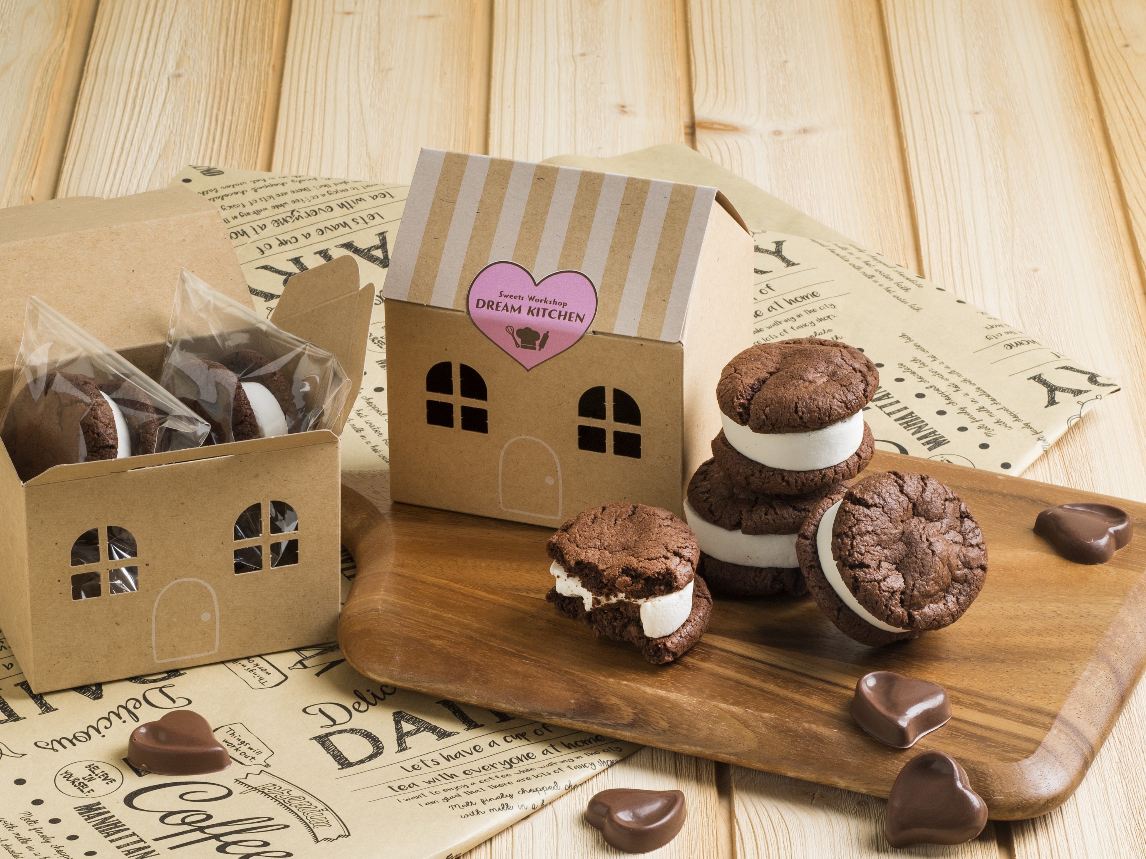 【体験料金】900円(税込)白い恋人に使用しているチョコレートを練りこんだクッキーにマシュマロをサンド。