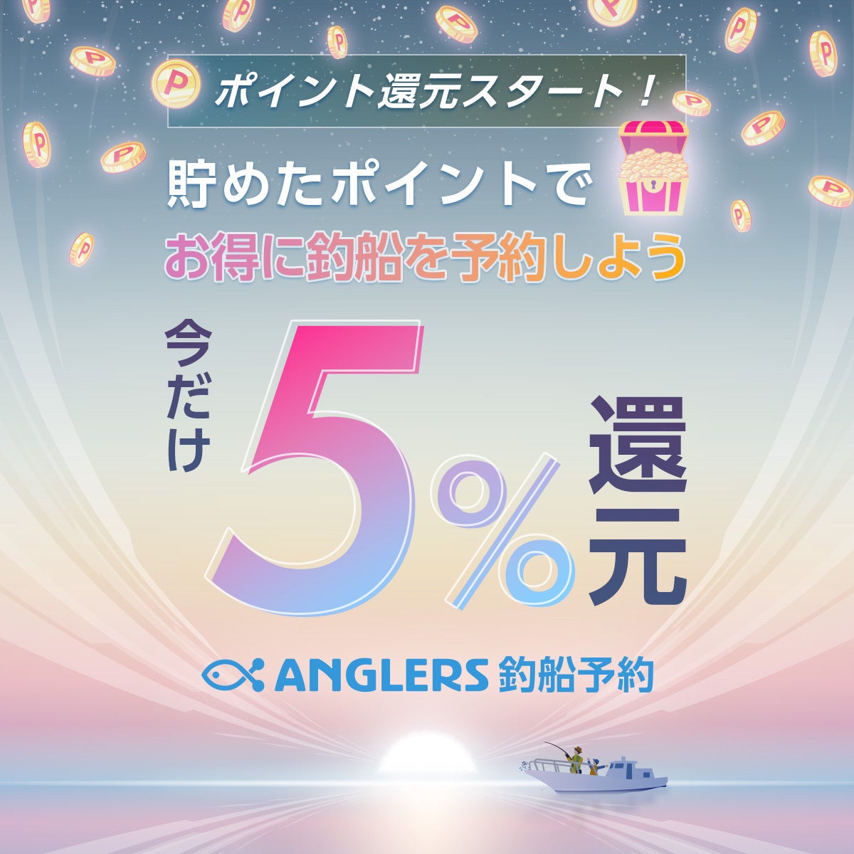 国内最大級の釣りアプリ「ANGLERS(アングラーズ)」を運営する株式会社アングラーズ(本社:東京都町田市、代表取締役:若槻嘉亮)は、釣船予約サービス「アングラーズ釣船予約」において2025年6月より、利用金額に応じてポイントが貯まる新サービス「ANGLERSポイント」を開始します。本サービスでは、釣船の予約金額に応じてポイントが付与され、次回以降の予約時に割引として利用可能なプログラムとなっています。