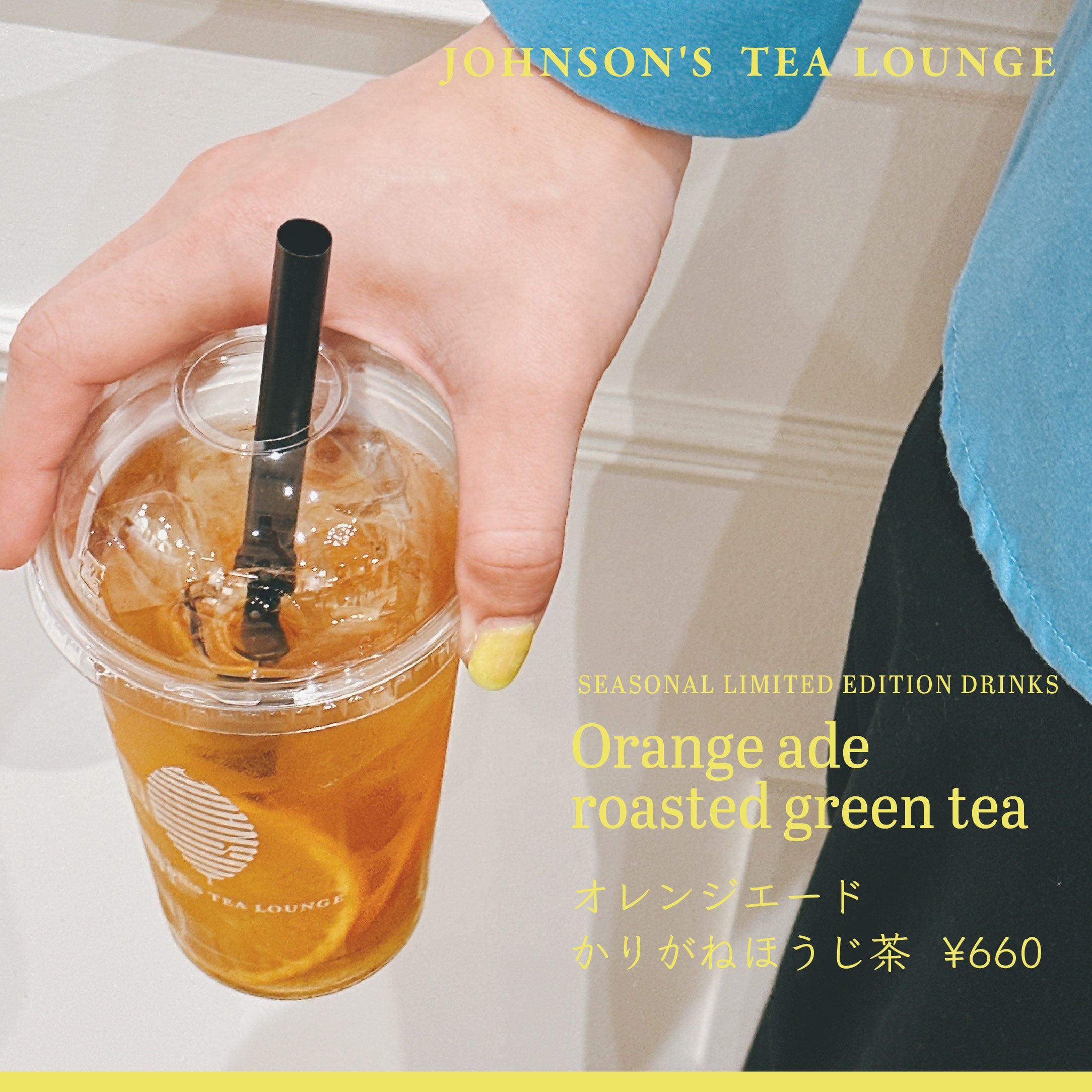 毎年大人気のオレンジエードは輪切りしたオレンジを砂糖とはちみつに漬けこみ、甘くフルーティーな原液を日本茶カフェならではの三種の割り方でお楽しみいただけます。サッパリとしたかりがねほうじ茶、玄米の旨みも楽しめる抹茶入り玄米茶、スタンダードな炭酸水からお選びください。