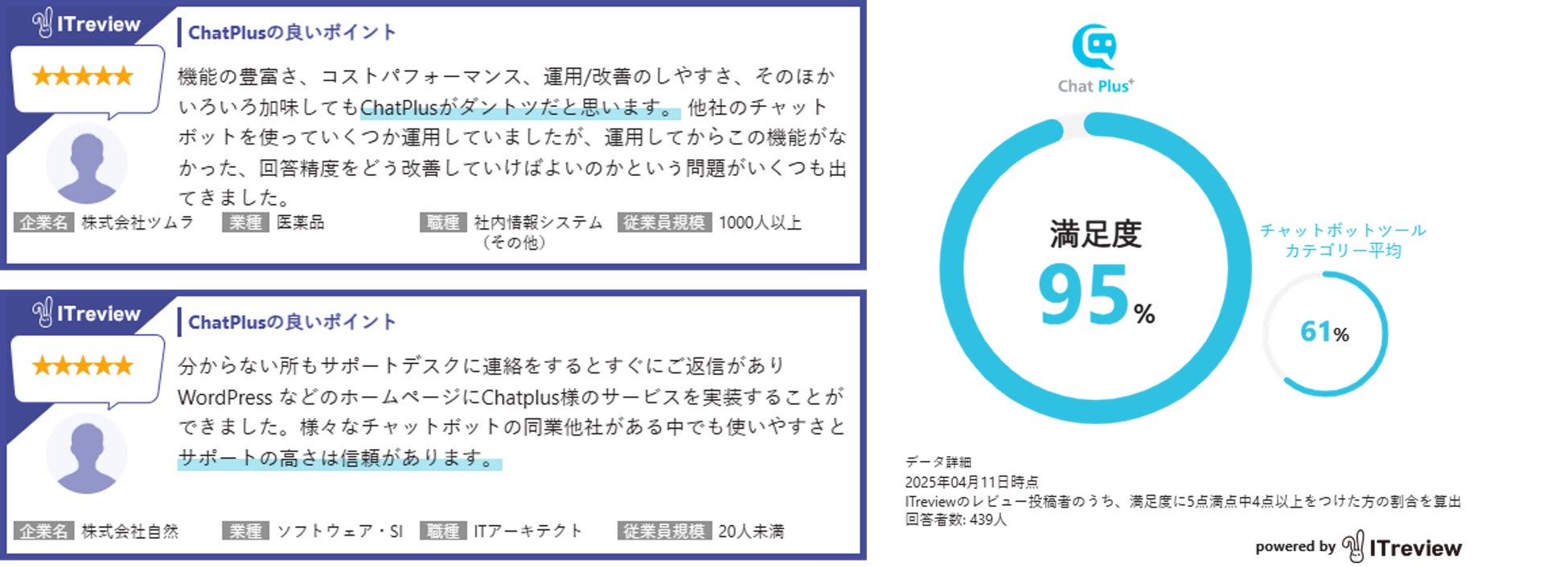 生成AI対応のチャットサポートシステム「ChatPlus(チャットプラス)」、ITreview Grid Award 2025 Springの4部門で23期連続Leaderに選出