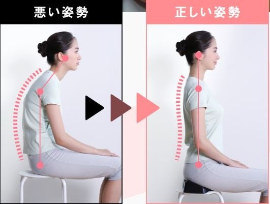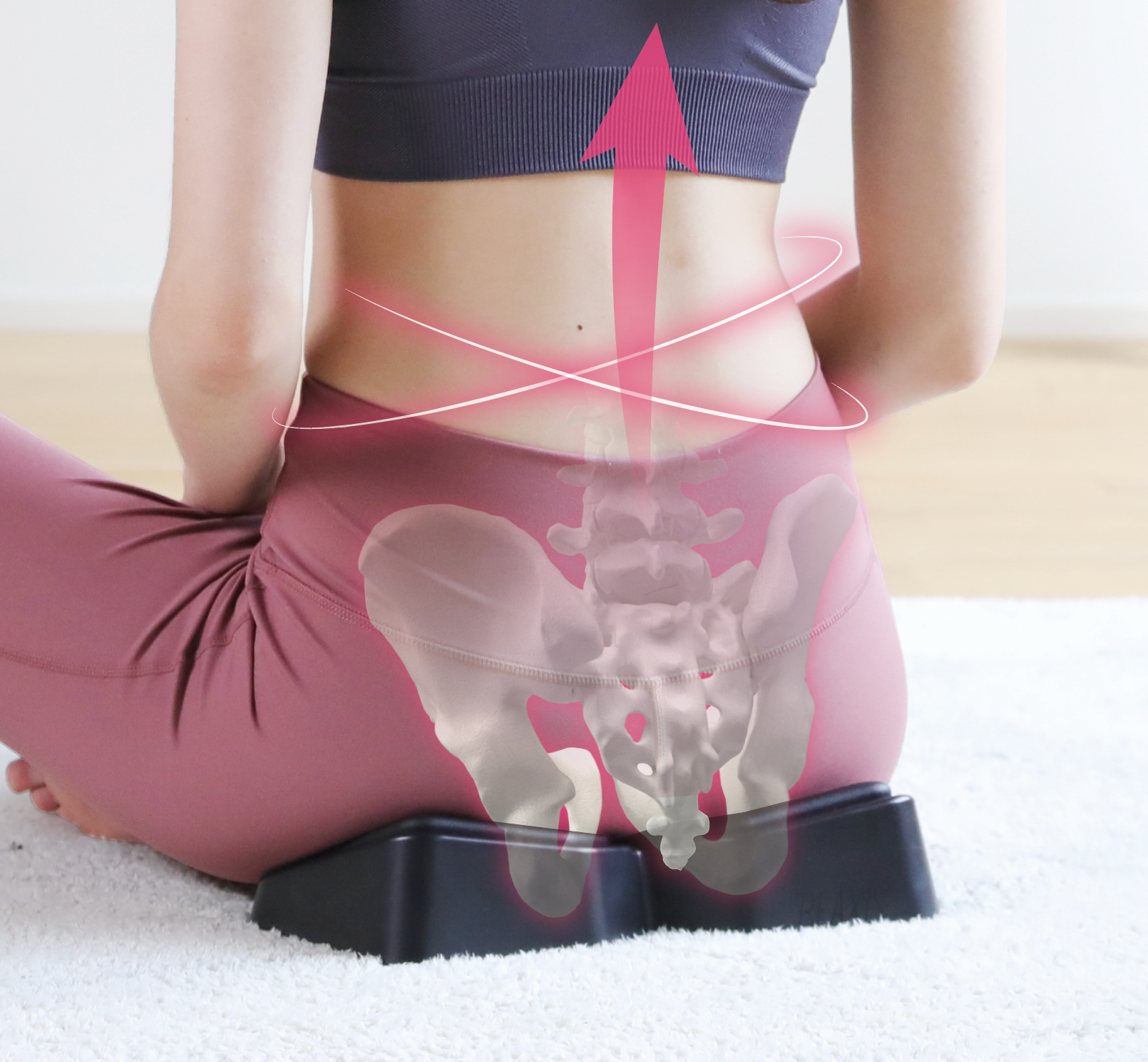 ポッコリ下腹が解消されない原因の一つが、骨盤の歪みです。骨盤が歪んでいると、猫背や垂れ尻等の症状が現れ、体幹のない痩せづらい身体になってしまいます。そんな悩みから、当商品は坐骨にフィットする穴と、骨盤を前後左右から支える形状にしたことで、骨盤を立たせたまま安定させる事に成功。骨盤が立った状態になることでバランス良く筋肉が使われ、正しい体幹を身につけることができます。