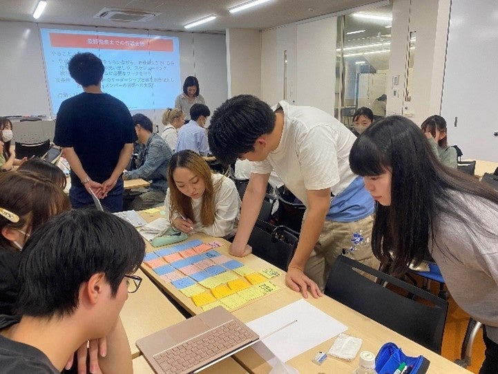 本プロジェクトでは、auフィナンシャルサービスが設定した「クレジットカードを含むキャッシュレス決済を用いて、少子高齢化によって生じる問題を解決するための施策を提案してください」という課題に対し、参加学生が解決案の提案を行いました。学生は全6回のプロジェクトの中で、ゼミ内で学んだリーダーシップ理論を活用し、チームとして仮説立案からデータ収集・資料作成を行い、最終回では提案のプレゼンテーションを実施しました。