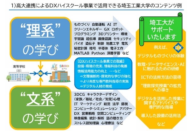 1)高大連携によるDXハイスクール事業で活用できる埼玉工業大学のコンテンツ例